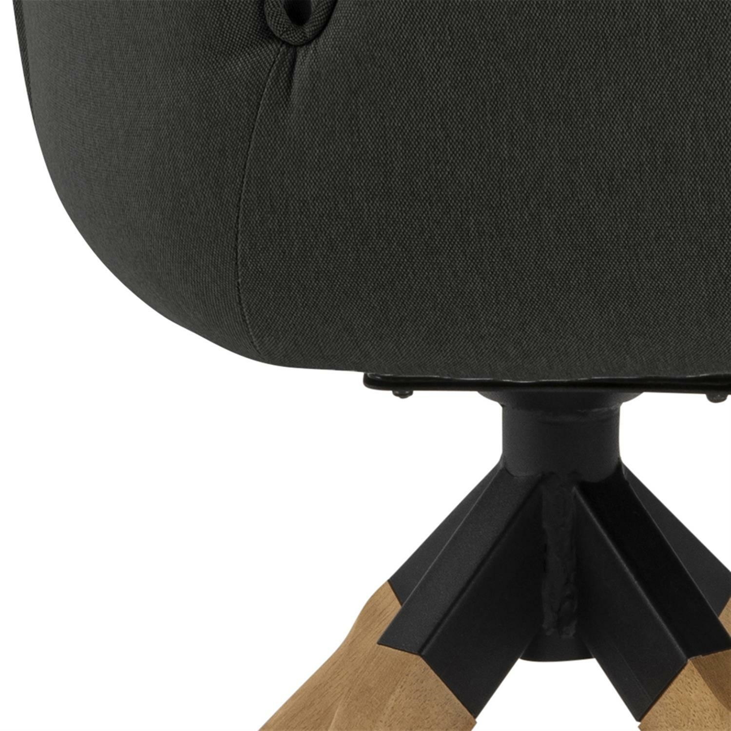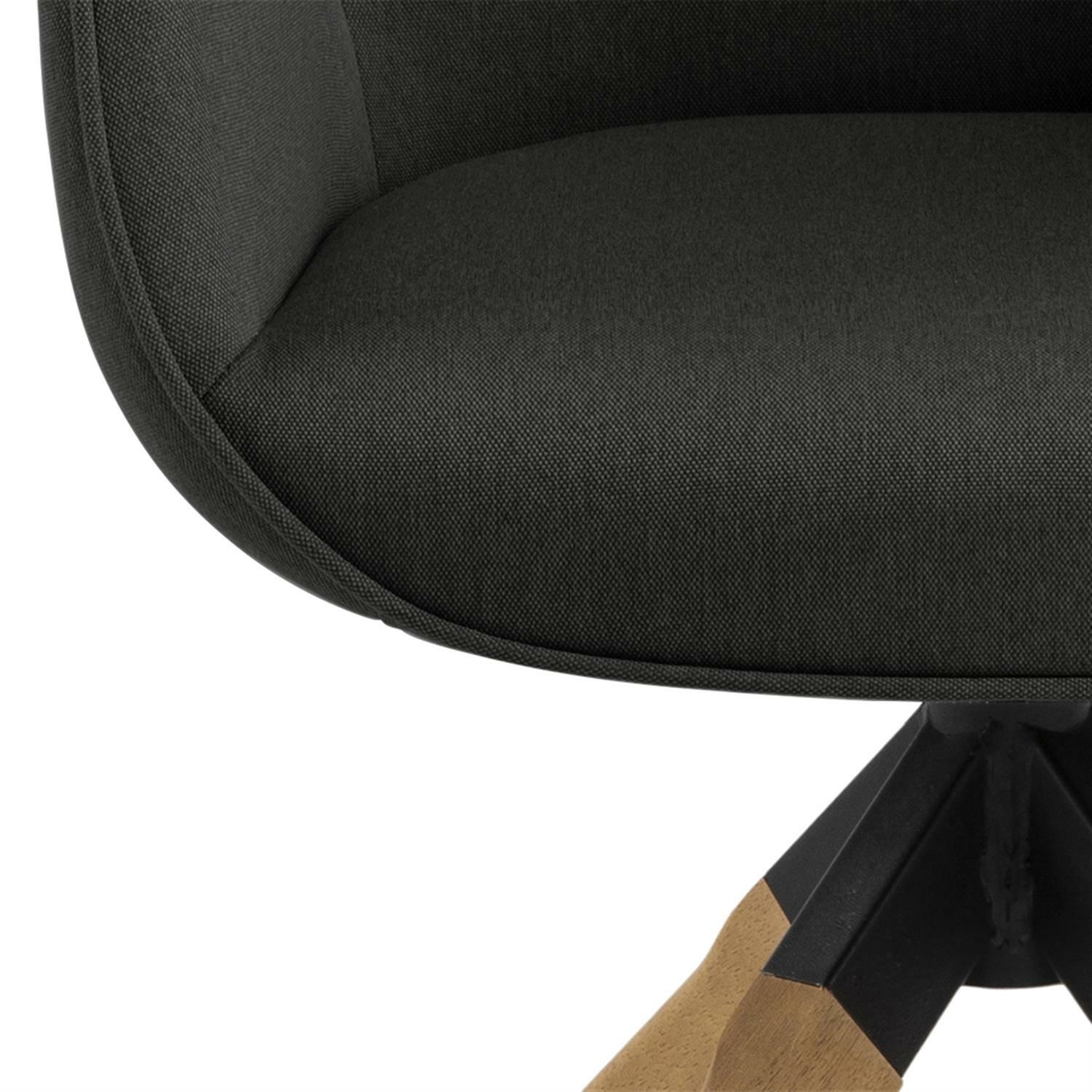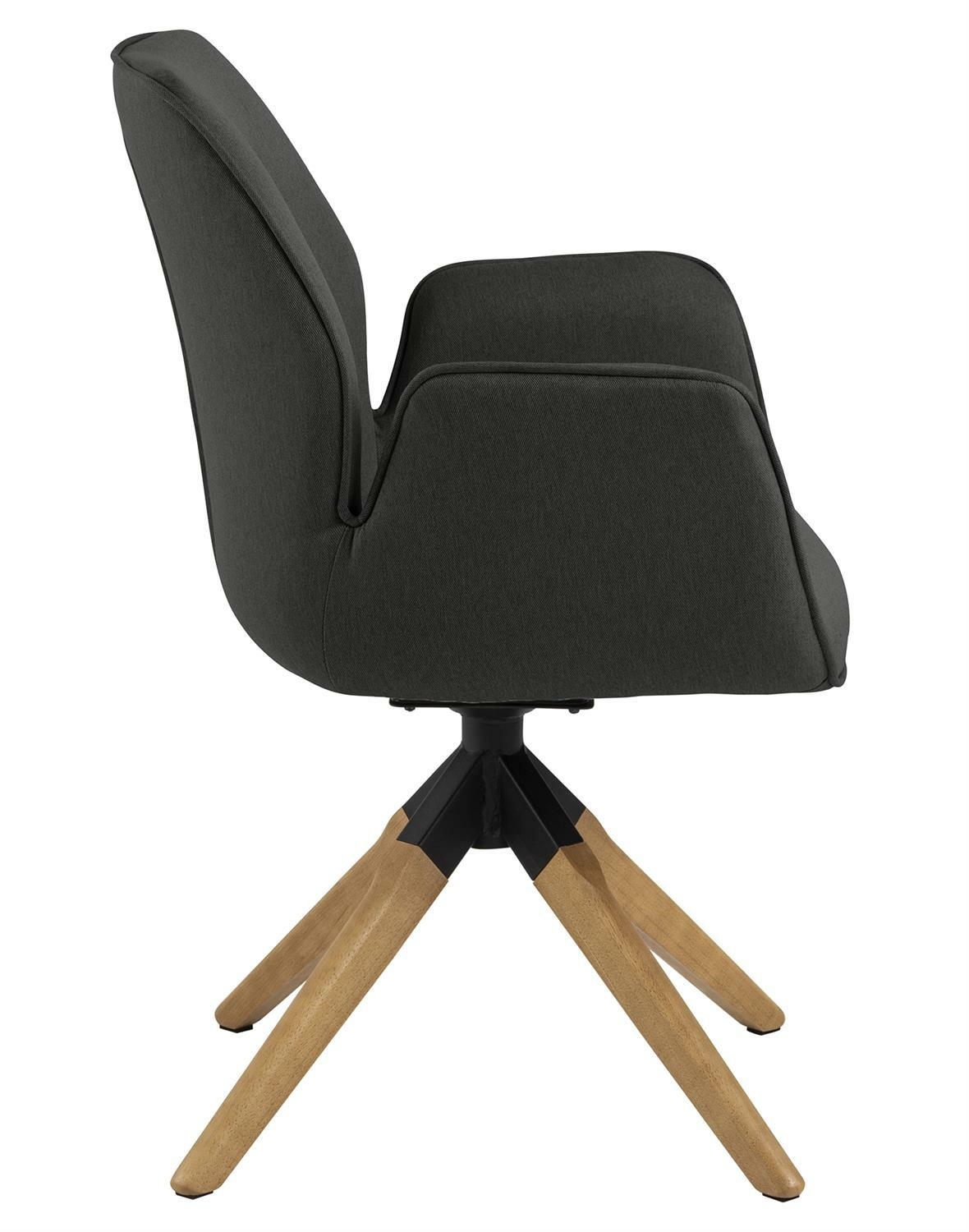 Krzesło w skandynawskim stylu Aura jest niezwykle efektownym i wygodnym siedziskiem. Odpowiednio wyprofilowane siedzisko zostało obite miękką pianką tapicerską oraz tkaniną Town dark grey33. Tkanina krzesła jest łatwa w utrzymaniu w czystości. Ciepły odcień szarości sprawi, że wnętrze jadalni lub salonu stanie się ciepłym i przytulnym. Podłokietniki o optymalnej wysokości zostały wyprofilowane na zewnątrz, aby spotęgować komfort siedzenia. Podstawą krzesła są cztery nogi z litego olejowanego drewna kauczukowego.. Nogi krzesła wychodzą z jednego wspólnego punktu i rozchylają się dość szeroko, aby zagwarantować stabilizację. Siedzisko krzesła jest obrotowa. Funkcję tą zawdzięcza czarnemu, metalowemu mechanizmowi, który prócz funkcji obrotu łączy również krzesła z siedziskiem. Wymiary kartonu: 77x42x62cm Max. ilość szt w kartonie: 1 Waga: 12kg