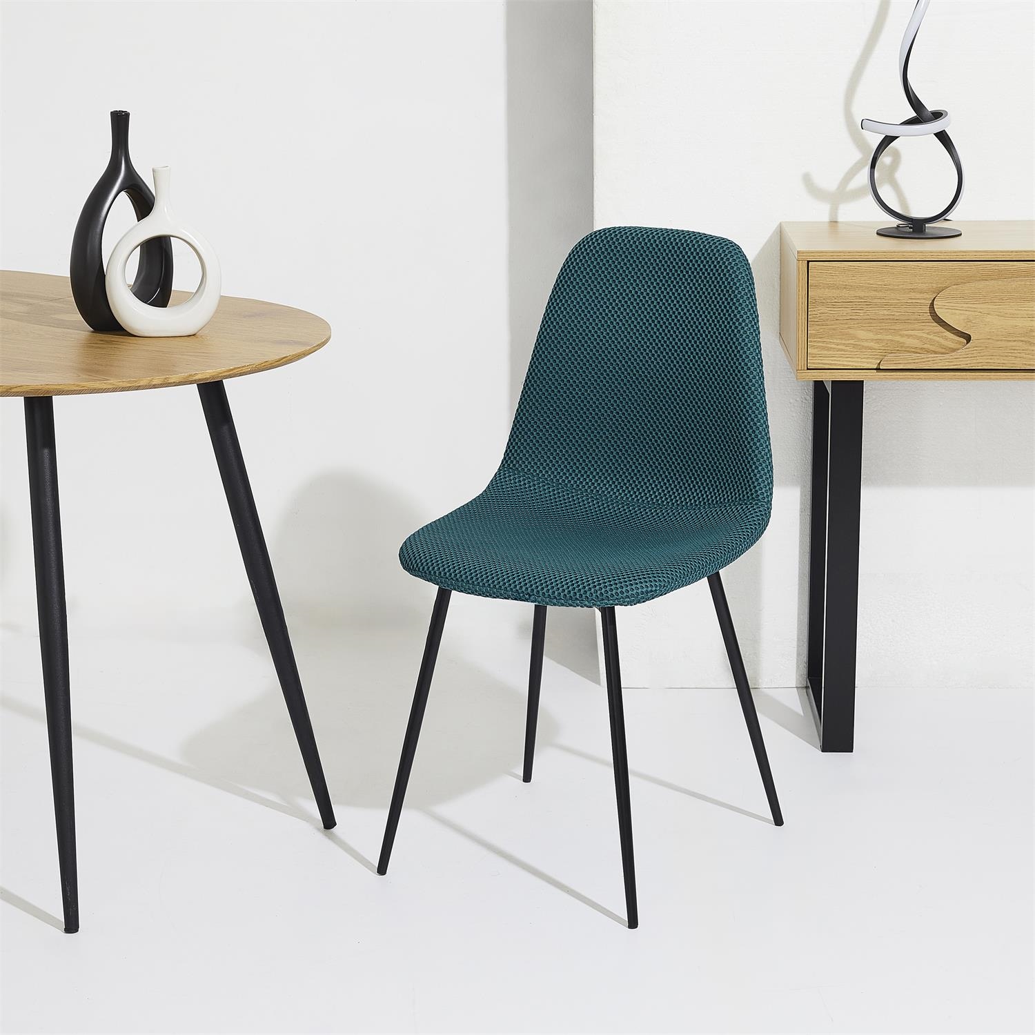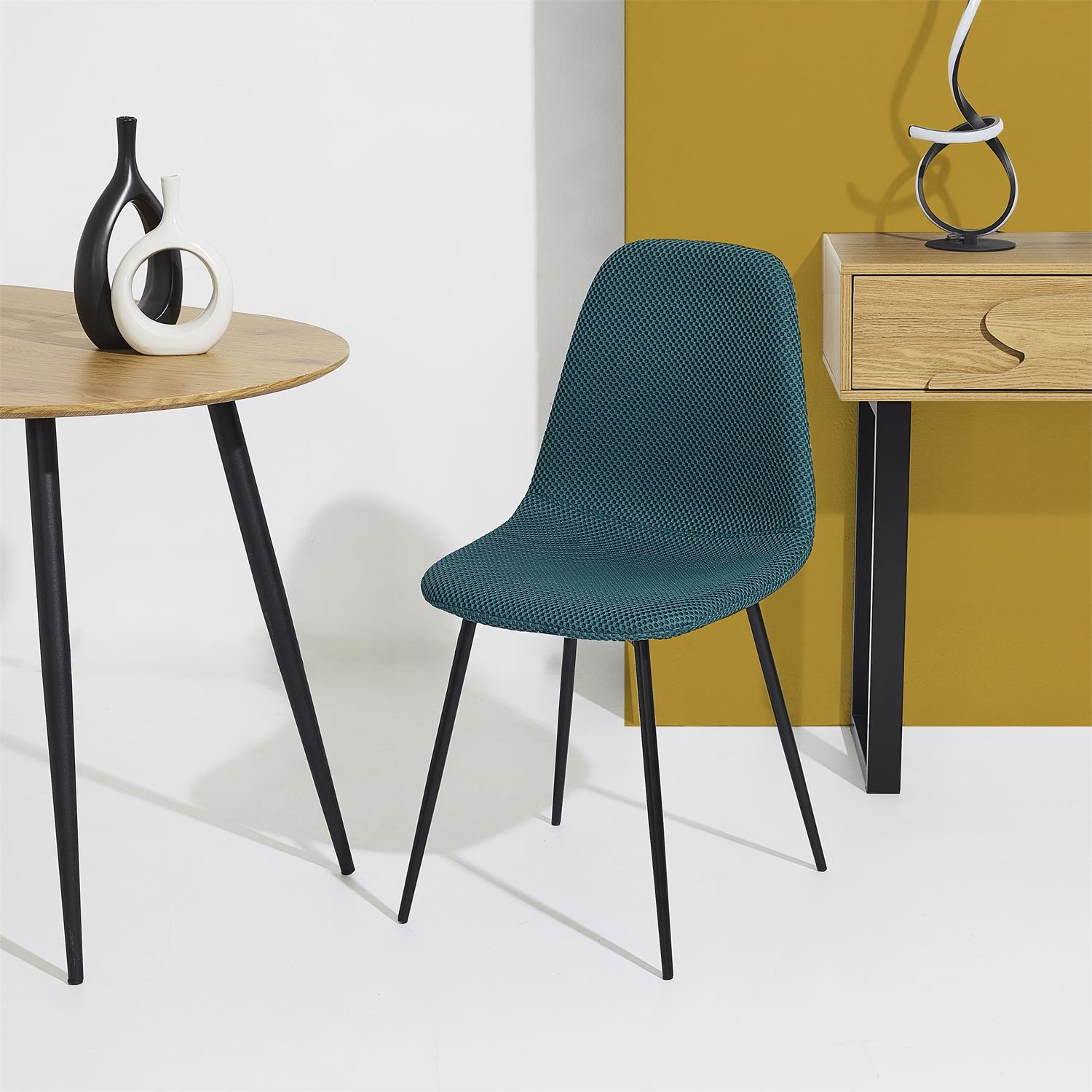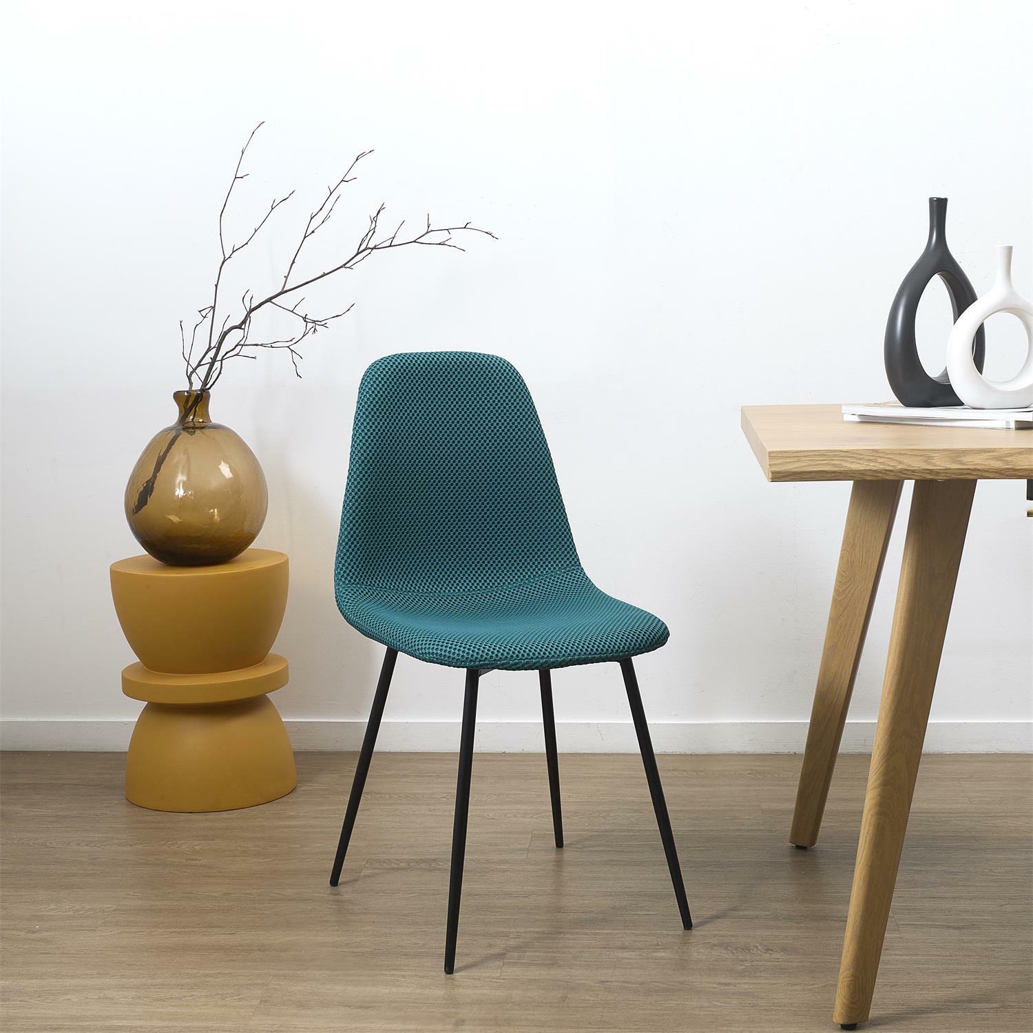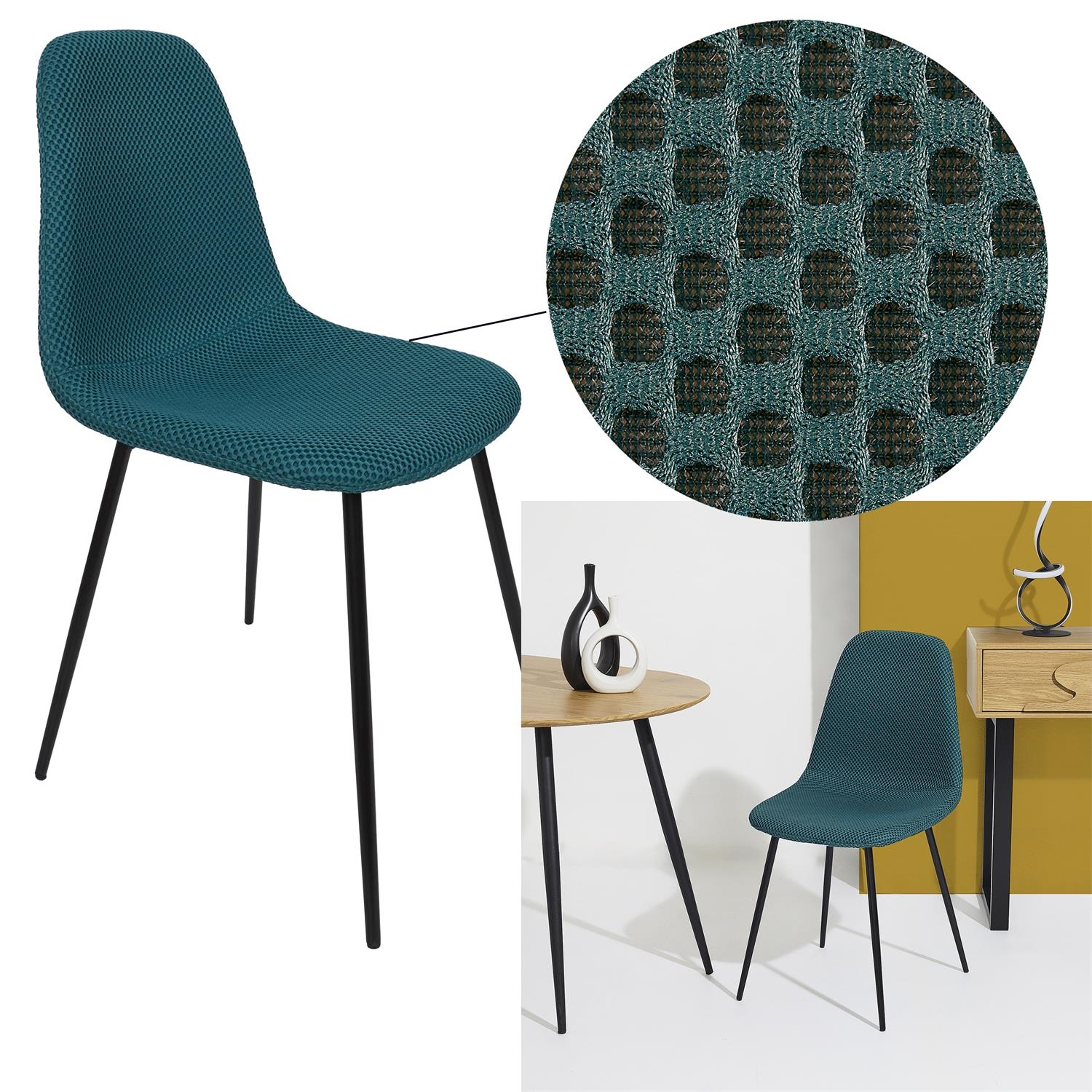 Krzesło Pori to połączenie wygodnego, wyprofilowanego siedziska oraz wytrzymałej metalowej podstawy. Tkanina dystansowana na krześle sprawia wrażenie trójwymiarowej. Tkanina charakteryzuje się bardzo dobrą przepuszczalnością powietrza oraz minimalnym pochłanianiem wody i wilgoci, dzięki czemu krzesł sprawdzi się również w jadalni lub kuchni. Skład tkaniny 100% poliester. Gramatura tkaniny 210g/m2. Oparcie oraz siedzisko krzesła tworzą spójną całośc i gwarantują wygodne oparcie podczas posiłku. Krzesło Pori wymaga łatwego montażu. Max. obciążenie krzesła 110kg. Krzesło nie sztapluje się. Wymiary kartonu: 61x47x66cm. Waga 22kg. Max 4 szt w kartonie