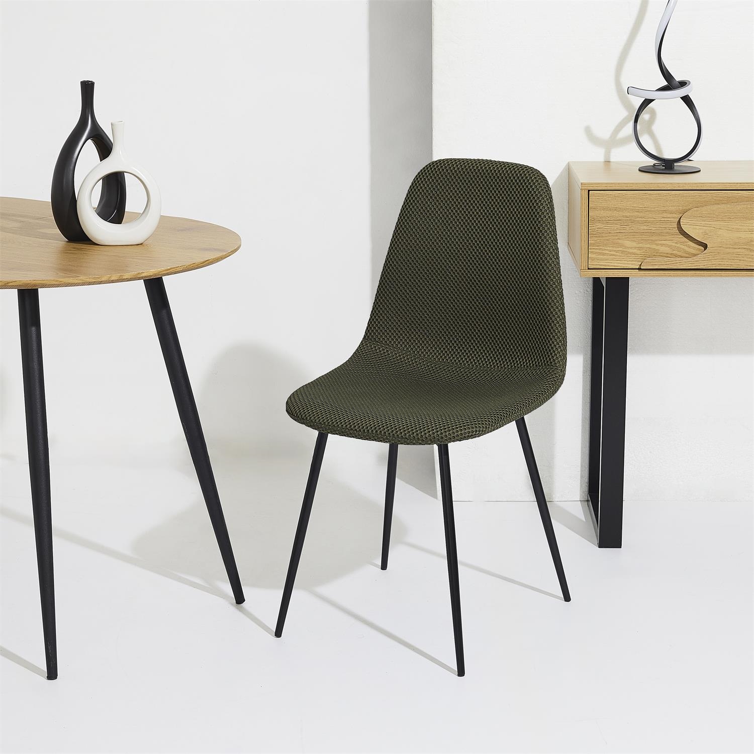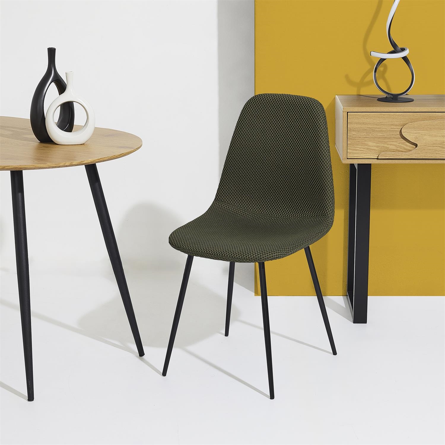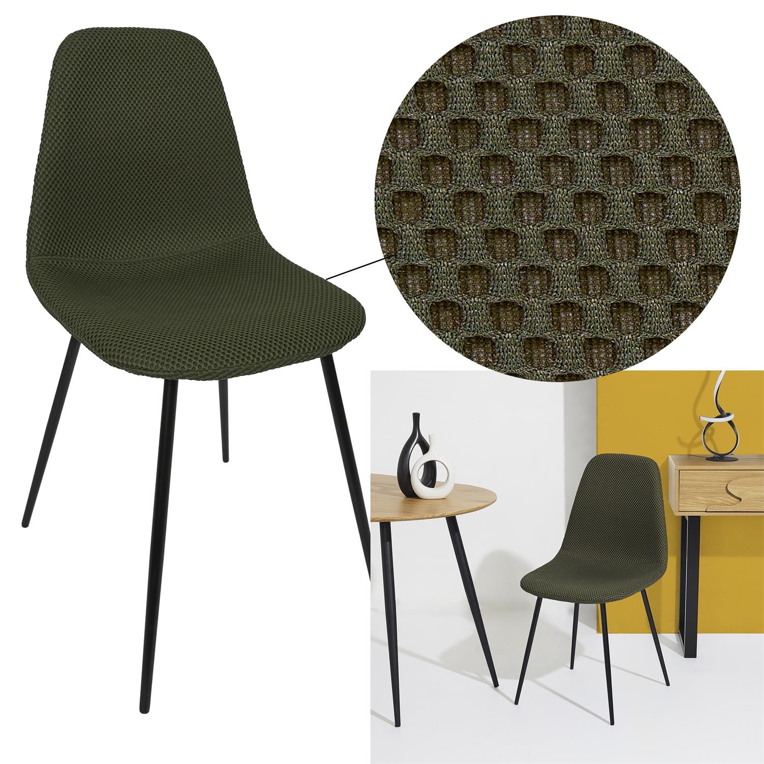 Krzesło Pori to połączenie wygodnego, wyprofilowanego siedziska oraz wytrzymałej metalowej podstawy. Tkanina dystansowana na krześle sprawia wrażenie trójwymiarowej. Tkanina charakteryzuje się bardzo dobrą przepuszczalnością powietrza oraz minimalnym pochłanianiem wody i wilgoci, dzięki czemu krzesł sprawdzi się również w jadalni lub kuchni. Skład tkaniny 100% poliester. Gramatura tkaniny 210g/m2. Oparcie oraz siedzisko krzesła tworzą spójną całośc i gwarantują wygodne oparcie podczas posiłku. Krzesło Pori wymaga łatwego montażu. Max. obciążenie krzesła 110kg. Krzesło nie sztapluje się. Wymiary kartonu: 61x47x66cm. Waga 22kg. Max 4 szt w kartonie