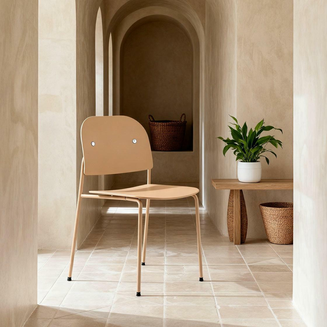 Krzesło Ravio to nowoczesny model o minimalistycznym designie, wykonany z trwałego tworzywa PP oraz stabilnych, metalowych nóg malowanych proszkowo. Lekkie, a jednocześnie wytrzymałe – maksymalne obciążenie do 120 kg. Możliwość sztaplowania ułatwia przechowywanie. Idealne do kuchni, jadalni i przestrzeni komercyjnych. Wymaga montażu.