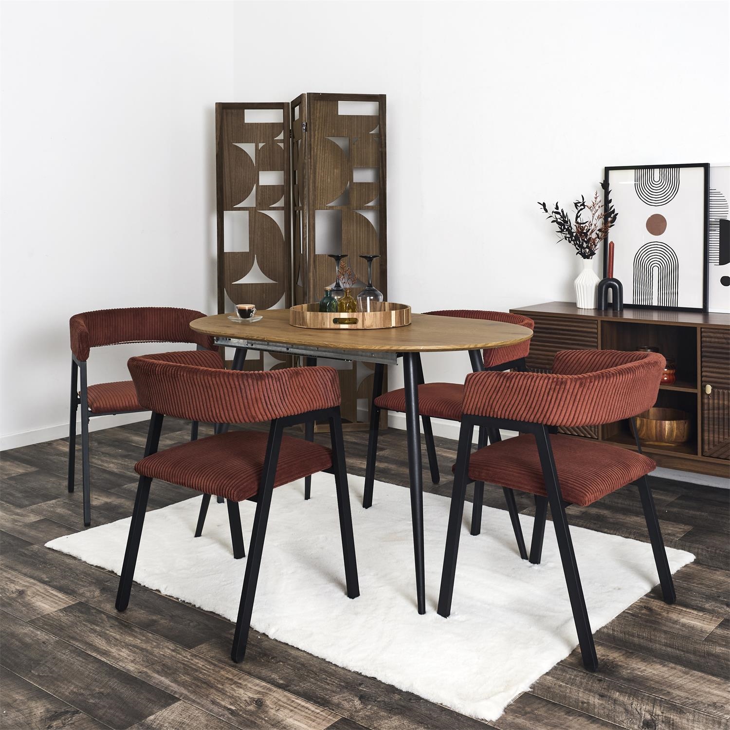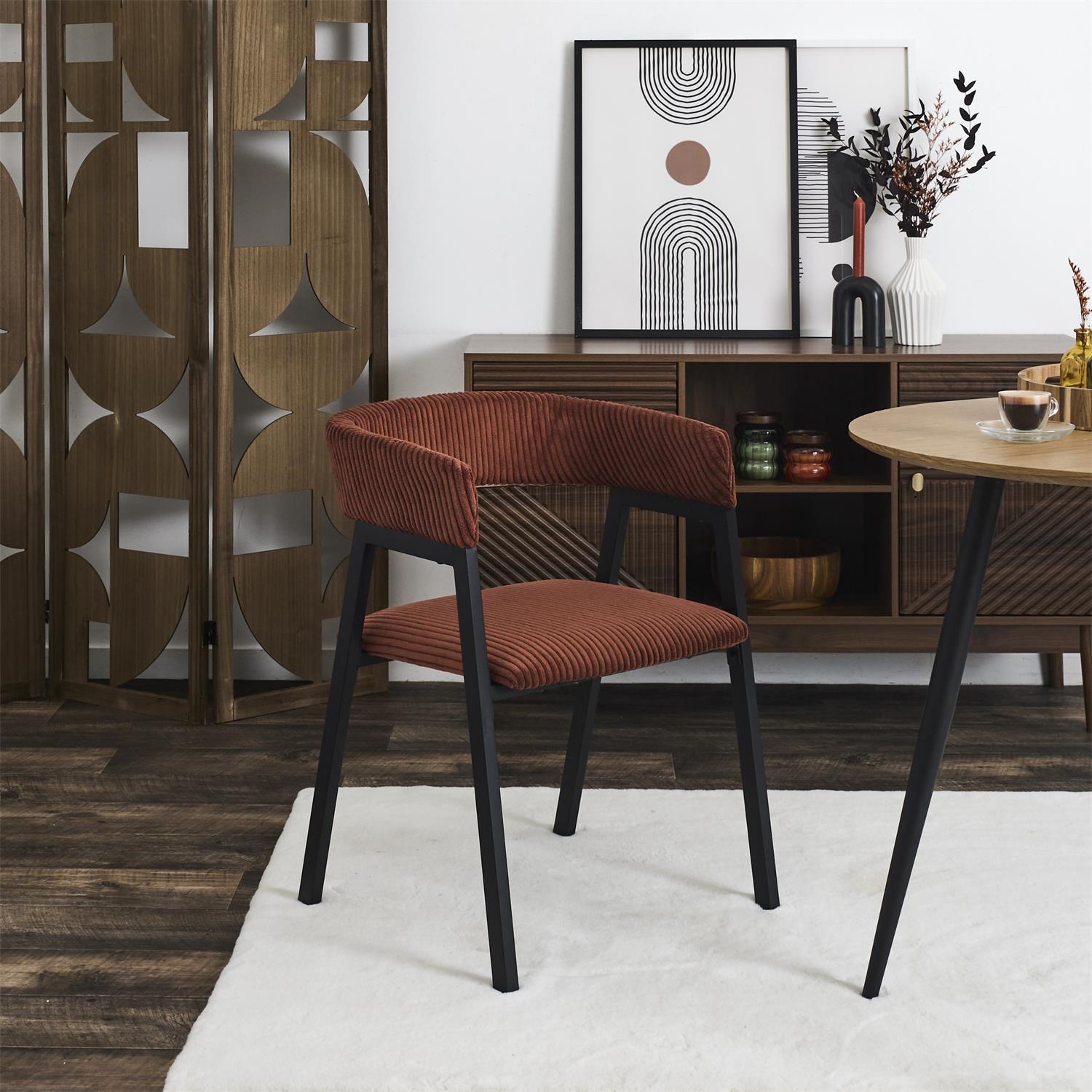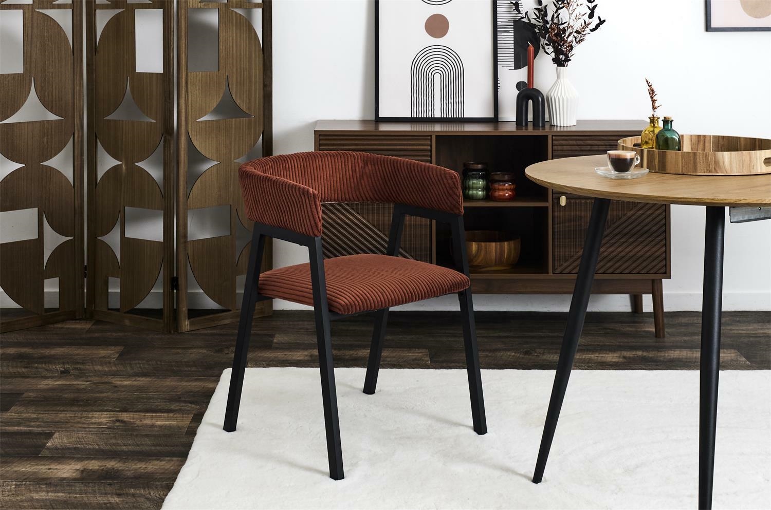 Krzesło Scott w sztruksowej, przytulnej tapicerce to nie tylko wygodne krzesło do jadalni lub salonu. Minimalistyczna, prosta forma mebla sprawia, że jest ono zarówno eleganckie jak i ponadczasowe. Krzesło wykonane z metalowej podstawy oraz tapicerowanego siedziska i oparcia. Max. obciążenie krzesła 110kg. Wymaga montażu.