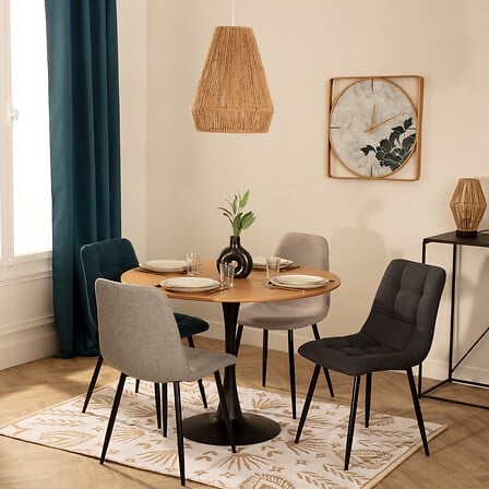 Krzesło z pikowanym przeszyciem sprawdzi się w przytulnej jadalni. Max. obciązenie 110kg Waga krzesła 4,4kg Wykonane ze sklejki obitej miękką gąbka tapicerską oraz tkaniną 100% poliester. Krzesło wymaga montażu Krzesło nie sztapluje się oraz nie nadaje się do użytku na zewnątrz.