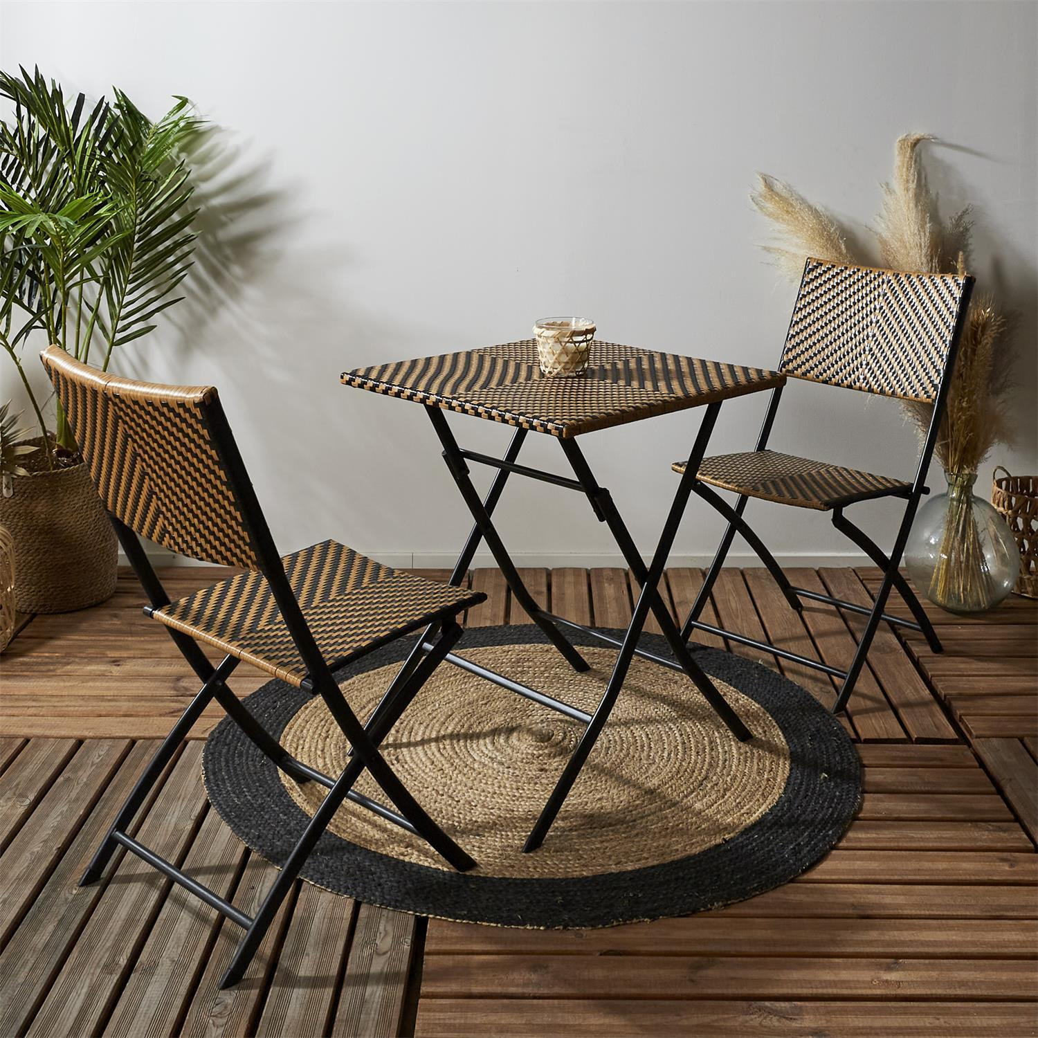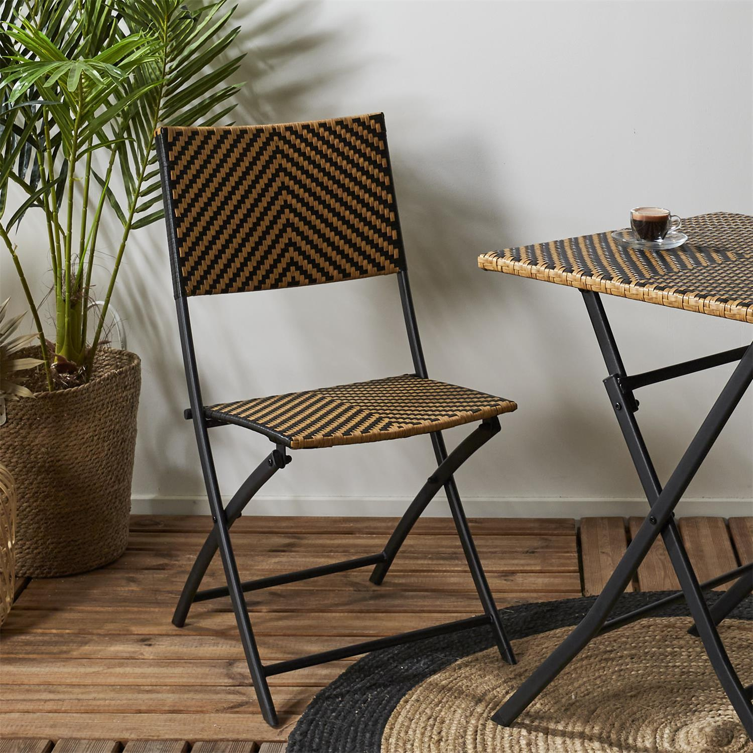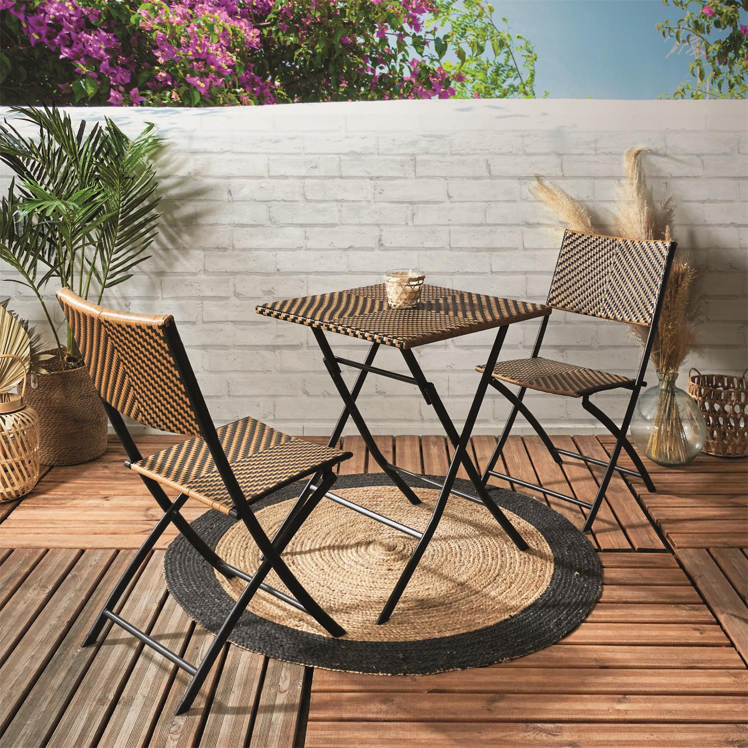 Składane krzesło Marron to połączenie plecionego techno rattanu oraz epoksydowanej stali. Wytrzymałe i dobrze zabezpieczone materiały mebla gwarantują wygodne jego użytkowanie na zewnątrz, na ogrodzie lub balkonie. Krzesło jest odporne na promienie UV, dzięki czemu nie straci koloru. Dokupując składany stół o tej samej nazwie możemy skompletować zestaw mebli na balkon na długie lata.