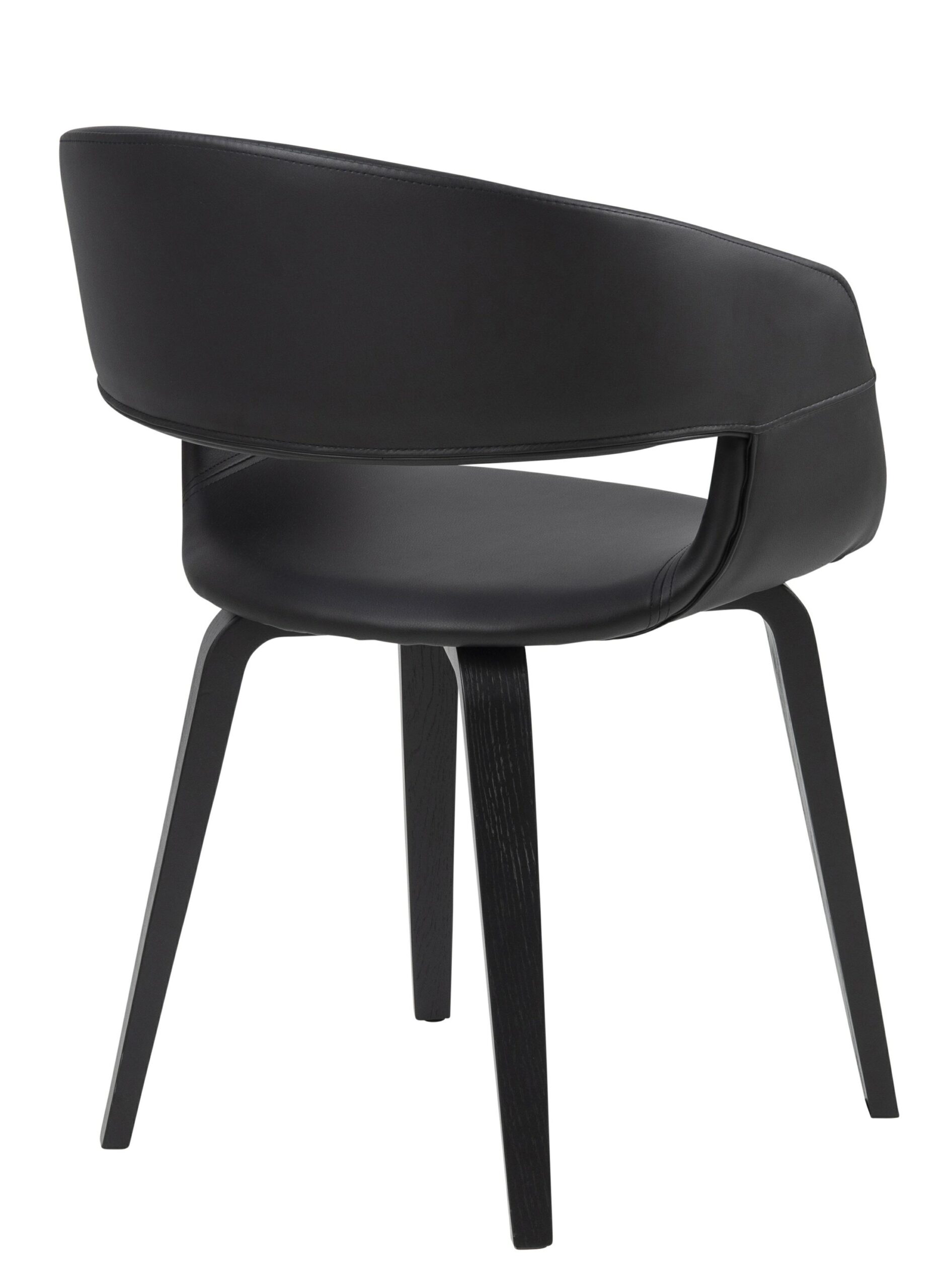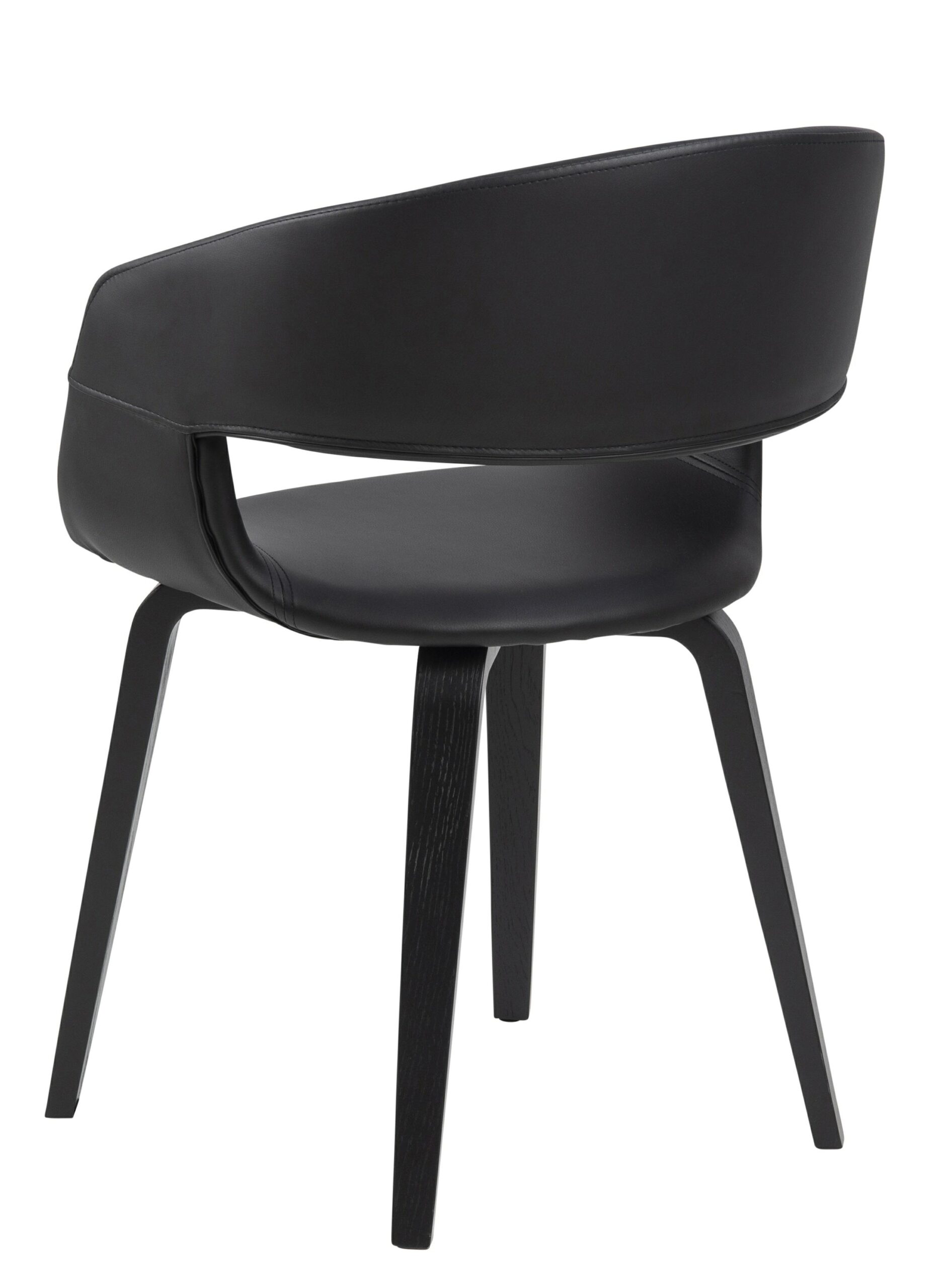 Ponadczasowe krzesło Nova o niebanalnym kształcie sprawdzi się zarówno w salonie, kuchni, jak i jadalni. Krzesło Nova wpasuje się do wnętrz w stylu nowoczesnym, skandynawskim, czy industrialnym. Cztery drewniane, krzyżujące się pod siedziskiem nóżki gwarantują odpowiednią stabilność i bezpieczeństwo. Zostały wykonane z giętego forniru dębowego pomalowanego na kolor czarny. Siedzisko zostało wykonane z wysokiej jakości czarnej skóry ekologicznej, która jest bardzo wytrzymała i pięknie się prezentuje. Półokrągłe wycięcie w oparciu sprawi, że krzesło Nova będzie niezwykle ciekawym elementem wyst