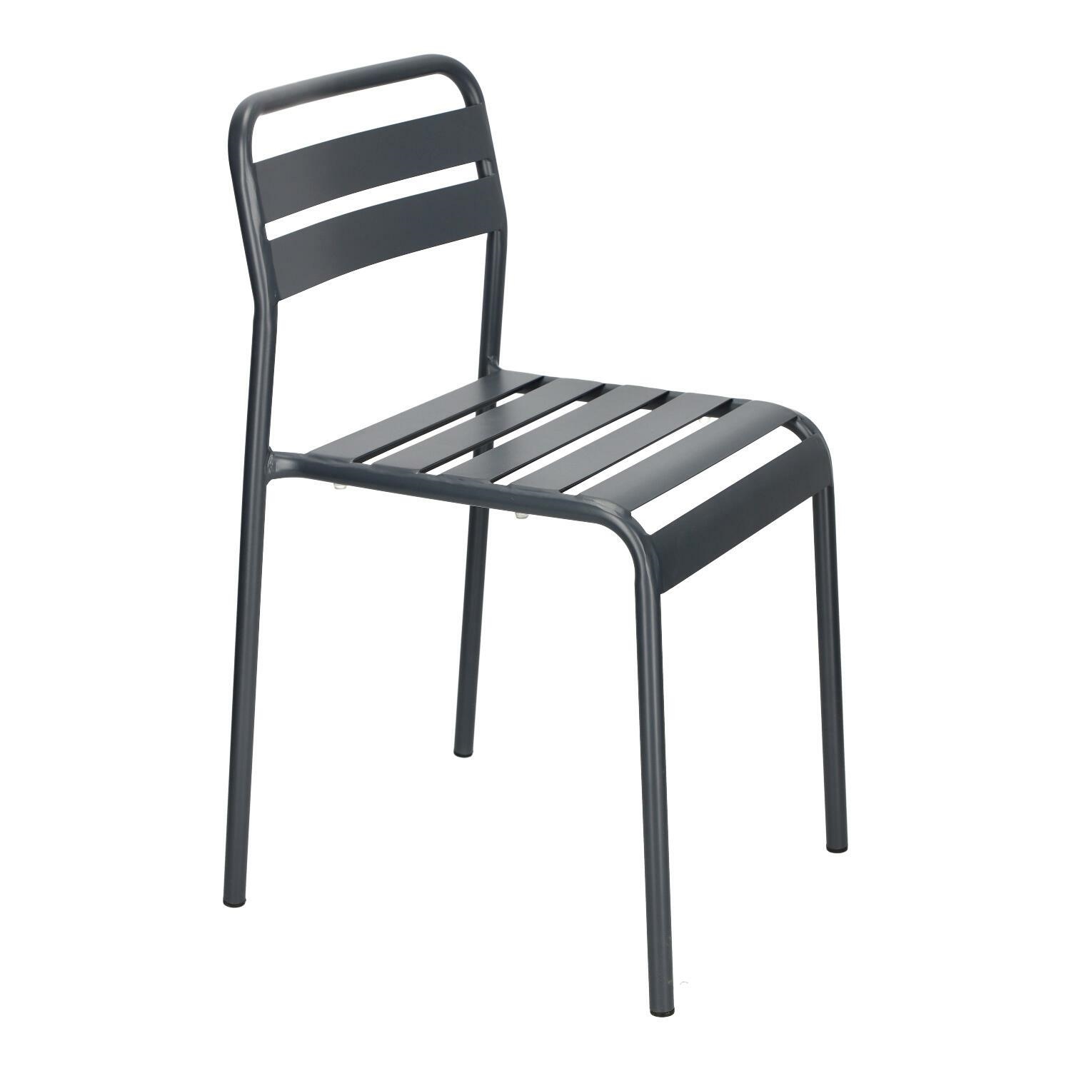 Wykonane w całości metalowe krzesło Terra to idealny mebel na balkon, taras lub do ogrodu. Minimalistyczne krzesło lakierowane proszkowo może być używane na zewnątrz. Poziome listwy krzesła gwarantują wentylację oraz wygodę użytkowania. Krzesło Terra sztapluje się. Można układać w stosy do 6 szt. Szerokość siedziska: 38 cm. Głębokość siedziska 38 cm. Grubość nóg 2,4 cm. Waga krzesła 5,5 kg Nie wymaga montażu Max. 4 szt w kartonie Wymiary kartonu: 88x62x50 cm. Waga kartonu: 24cm