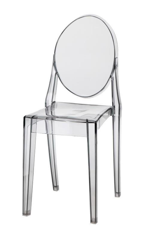 Wykonane z pojedynczego kawałka polycarbonatu, krzesło łączy w sobie czysty design i mocną strukturę z lekkością wyglądu. Zaokrąglona górna część,oparcia kontrastuje z kwadratowym siedziskiem tworząc niespodziewanie elegancką całość. Mimo delikatności formy, krzesło jest stabilne i solidne, a dodatkowo odporne na pogodę.,Prezentowany produkt jest inspirowany projektem Victoria.Maksymalne obciążenie wynosi 120kg