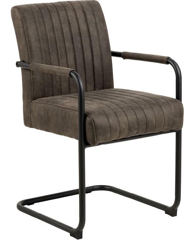 Krzesło z podłokietnikami Adele swoim designem nawiązuje do klimatu retro. Solidna metalowa podstawa w kolorze czarnym jest połączona z siedziskiem tapicerowanym antracytową tkaniną z mikrofibry ze specjalną powłoką, która nadaje jej surowy wygląd. Siedzisko wykonane jest na sprężynach kieszeniowych, co zapewnia wygodę podczas użytkowania. Kluczowe cechy Wygodne krzesło do jadalni z podłokietnikami w stylu retro Tapicerowane antracytową tkaniną z mikrofibry ze specjalną powłoką zapewniającą surowy wygląd Sprężyny kieszeniowe zapewniają wysoki komfort Pionowe szwy nadające teksturę Malowana proszkowo czarna podstawa Wykonane z materiałów ognioodpornych Ilość kartonów: 1 Wymiary kartonów: 61,5x55x73,5cm Waga kartonów: 11,7kg Szerokość siedziska: 46cm Głębokość siedziska: 45cm