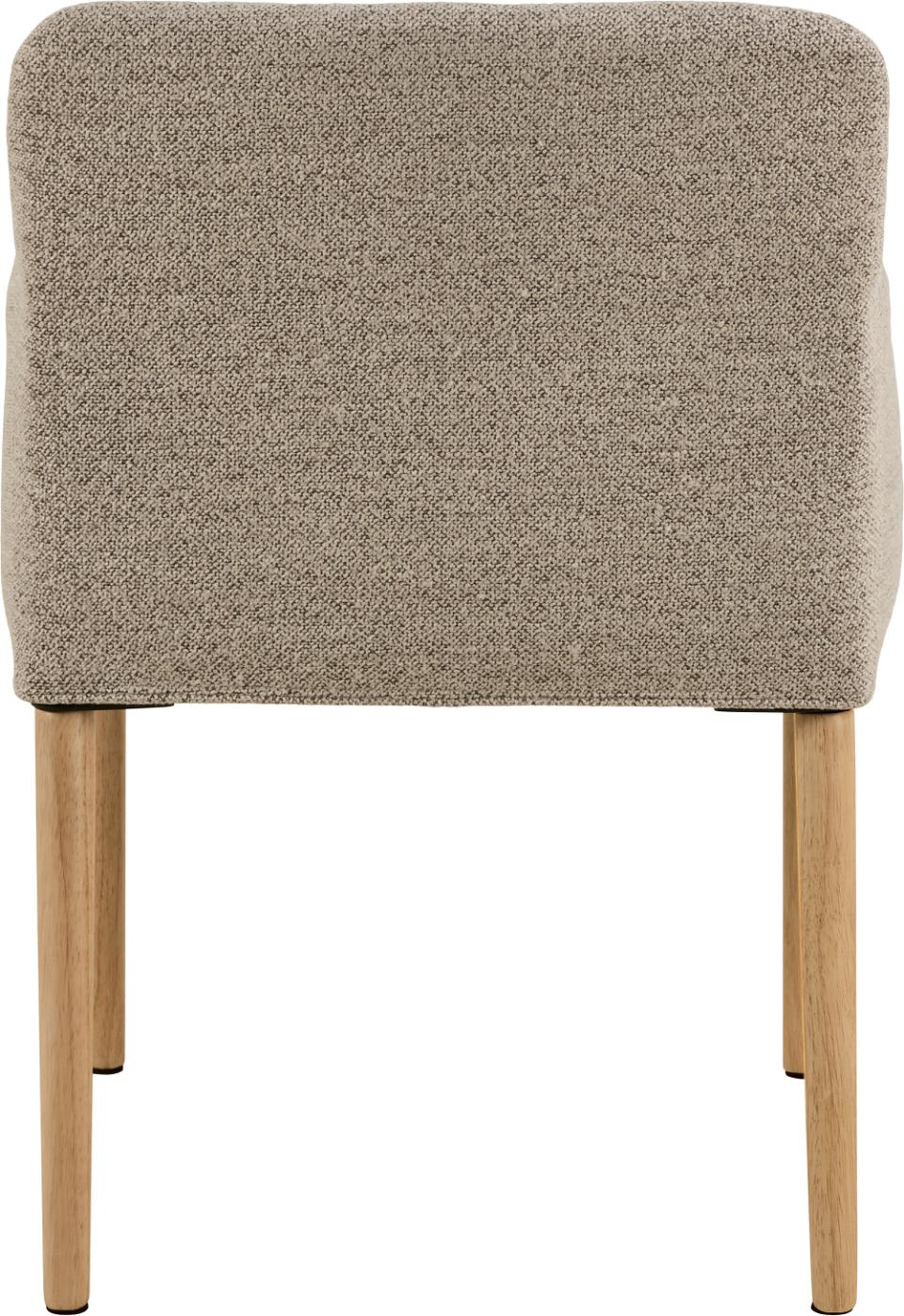 Krzesło Zoe tapicerowane w kolorze beżowym idealnie sprawdzi się we wnętrzu w stylu japandi, boho lub skandynawskim. Nogi krzesła wykonane zostały z drewna kauczukowego.
