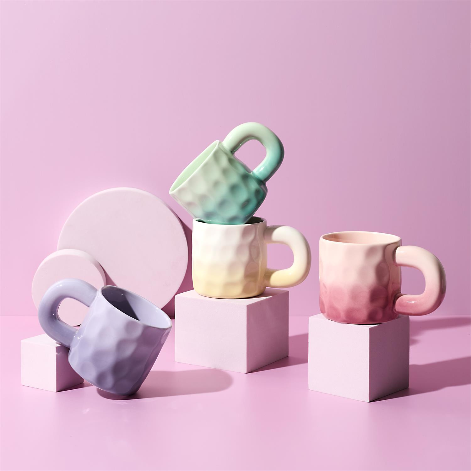 Designerski kubek Chubby sprawi, że każdy napój w nim podany będzie wyglądał super modnie i ponadczasowo. Kubek o nieregularnym kształcie z przerysowanym wielkim uchem to hit sezonu. Wyglądający jak spod ręki najwybitniejszych projektantów kubek o pojemności 330ml można myć w zmywarce. Kubek dostępny w 4 pasletowych kolorach. Wykonany ze szkliwionej ceramiki.