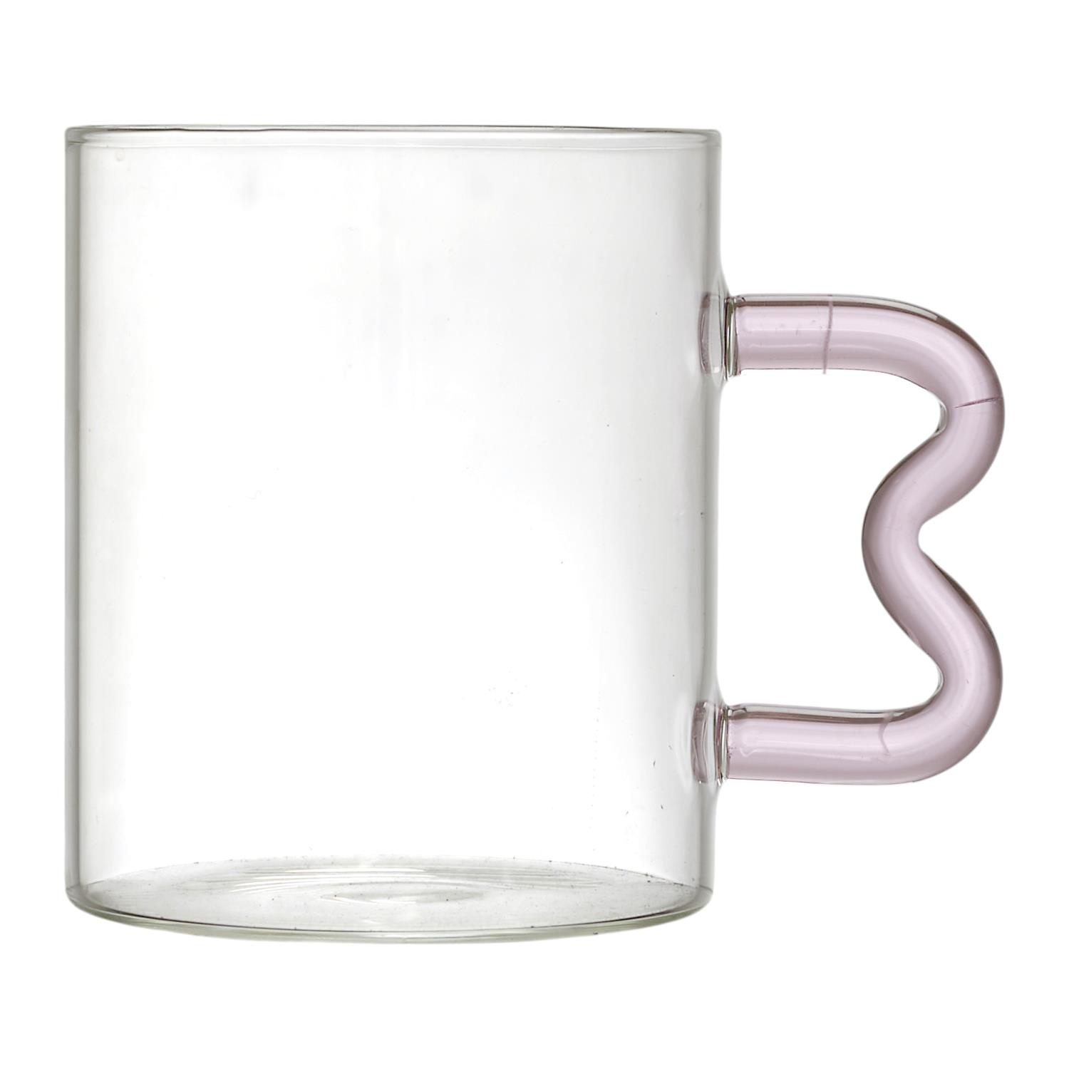 Szklany kubek ze szkła borowokrzemowego ozdobiony został uchem o niespotykanym kształcie. Dodatkowo kolor ucha idealnie współgra z czystą, transparentną szlaną pwoiechnią kubka. Pojemnośc 350 ml. Można myć w zmywarce, Można używać w mikrofalówce. Nie używać w piekarniku.