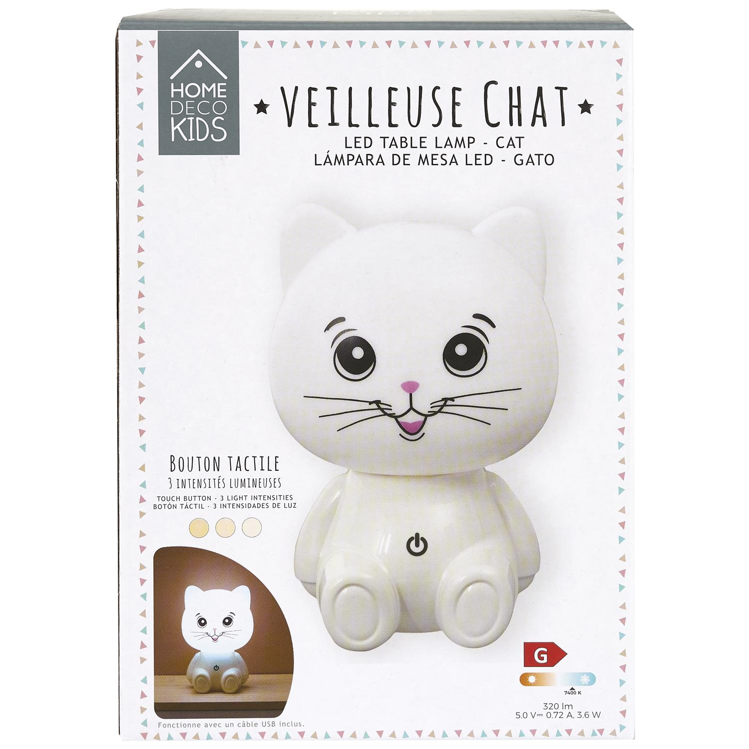 Lampka nocna Kot USB LED biała