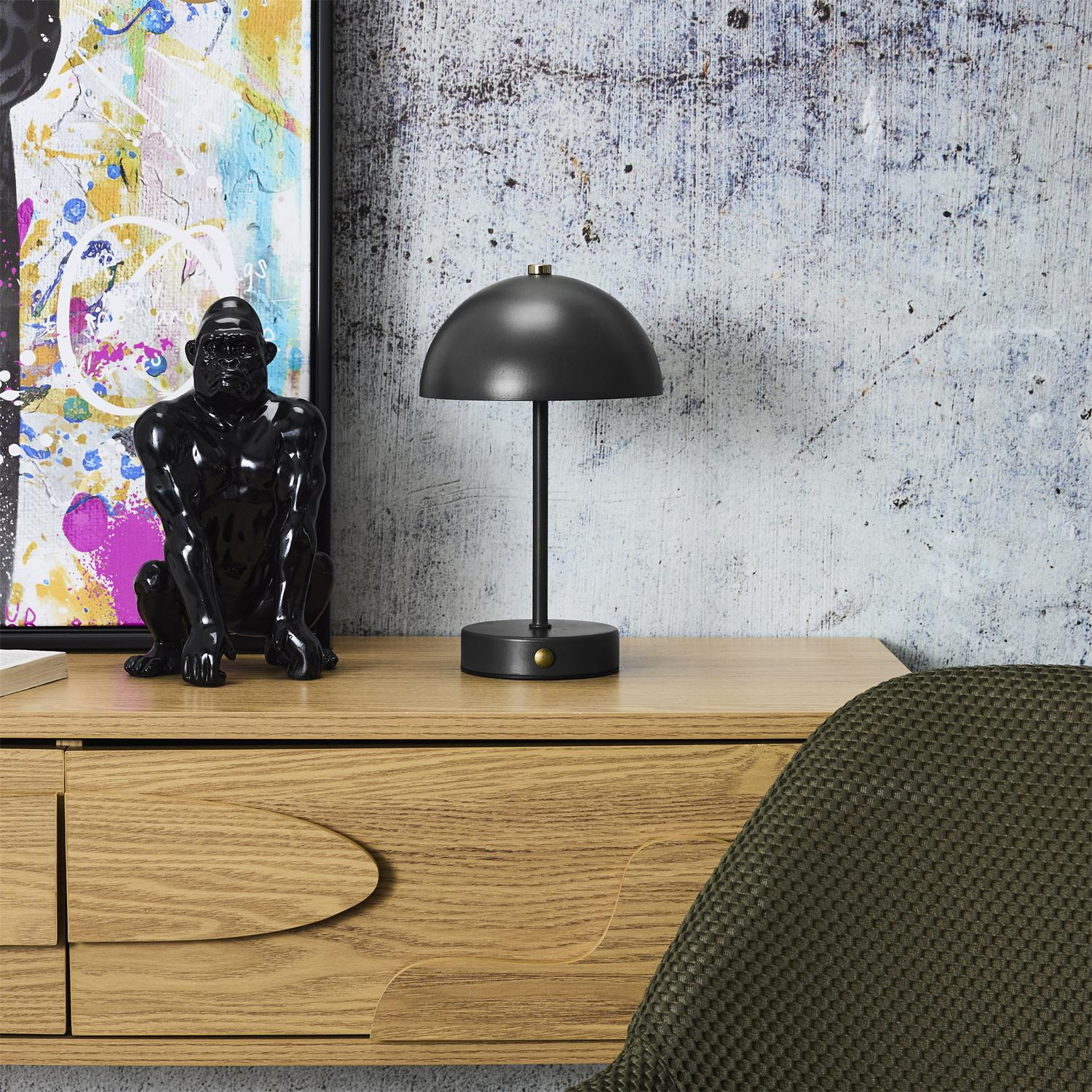 Lampka stołowa w kolorze czarnym wykonana z metalu jest idealnym punktem świetlnym do miejs, gdzie nie przewidzieliśmy gniazdka. Lampka posiada wbdowany akumulatorek, dzięki czemu ładujemy ją za pomoca kabla USB i możemy cieszyć się 4 godzianami nieustannego swiatła z energooszczędnych żarówek LED. Lampka klasy energetycznej G wyposażona została w niewymienialne źródło światła zintegorwane z przedmiotem. Lampka o 3 stopniowej mocy świecenia, którą włączamy za pomoca przycisku w podstawie. Barwa światła 3500K
