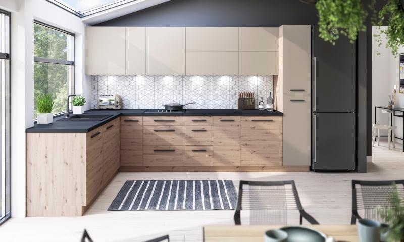 System kuchni LANGEN składa się z 24 szafek, 4 dekorów frontów oraz 8 blatów do wyboru. Na uwagę zasługuje fakt,że szafki wiszące dostępne są w różnych głębokościach, co daje niebanalne możliwości zabudowy. Kolory frontów można łączyć ze sobą w dowolny sposób. Do wyboru dwa rodzaje otwierania, klasyczne uchwyty lub system Push Open.