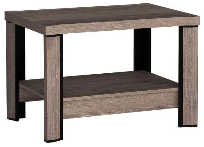 Stolik kawowy w pięknym wydaniu. Prosta budowa wkomponuje się w każdą przestrzeń, a dwa rodzaje kolorów pozwolą dopasować go w przeróżne aranżacje. Blat o grubości 48 mm, świetnie sprawdzi się jako miejsce, aby wypić herbatę lub pograć w gry z rodziną. Pod blatem znajdziemy półkę o grubości 12 mm idealną na drobiazgi i przeróżne przedmioty. Czarne obramowania są ciekawym dodatkiem, które na pewno zwrócą na siebie uwagę domowników, jak i gości.