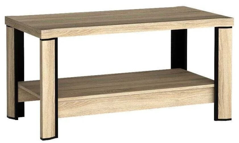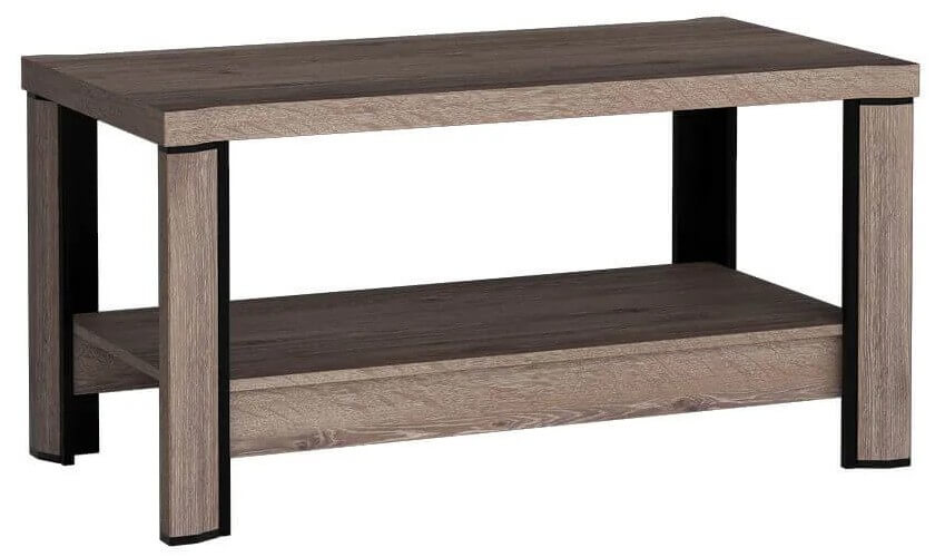Prosta budowa stolika przypadnie do gustu wszystkim, a szczególnie miłośnikom minimalistycznych mebli. Piękne obramowania zastosowane na stoliku są świetnym dodatkiem, wystarczy para foteli lub sofa, aby pięknie zagospodarować swój salon. Dzięki dwóm rodzajom kolorów łatwo wpasować się w dzisiejsze trendy oraz inne wystroje pokojów. Półka pod ławą urozmaici stolik i pozwoli wykorzystać to jako miejsce na akcesoria, czy nawet książki.