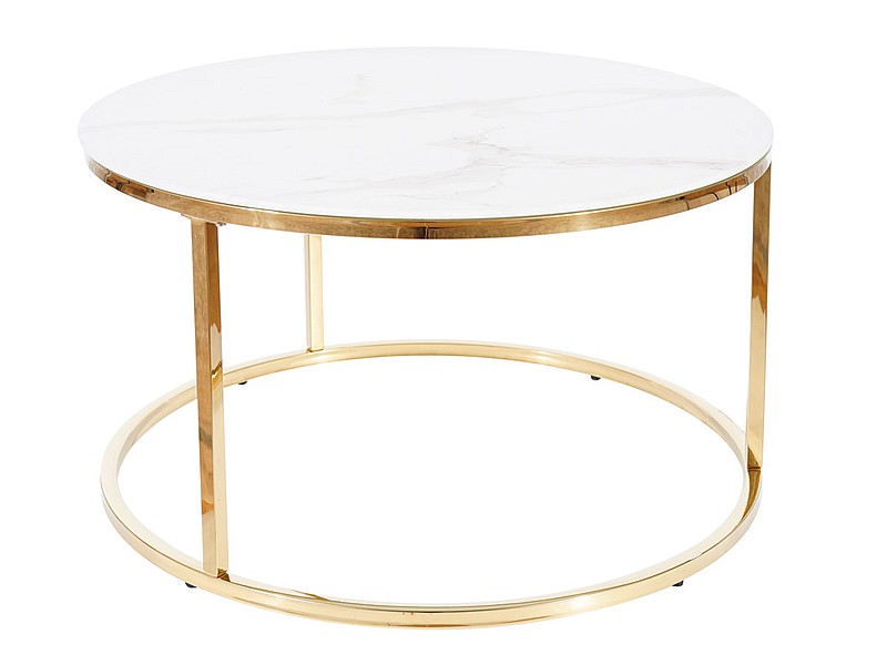 blat: szkło hartowane, stelaż: stal nierdzewna, kolor: biały, efekt marmuru / złoty