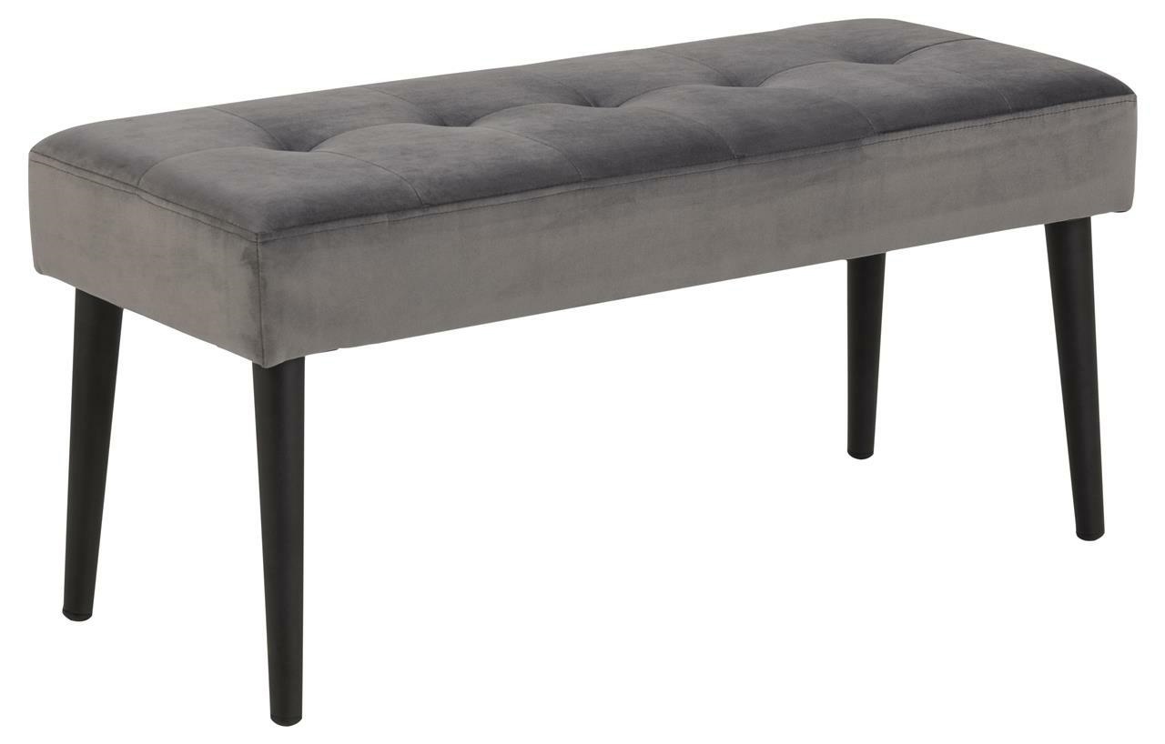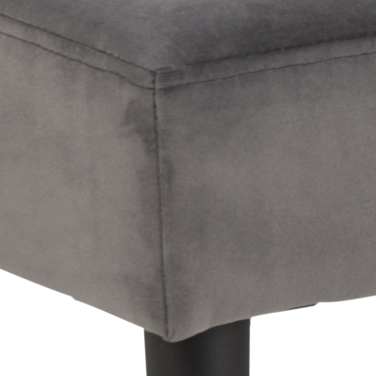 Ławka do przedpokoju Glory to wygodne siedzisko nie tylko pomagające w zakładaniu butów. Mebel wyposażony został w niezwykle przyjemne, miękkie siedzisko zrobione z pianki, obite przyjemną w dotyku welurową tkaniną w odcieniu szarości. Ciekawe pikowania na siedzisku dodaje ławce charakteru stylu glamour. Tkanina użyta do ibicia mebla to VIC dark grey 28. Całość osadzona została na wysokich, zwężających się nogach z metalu malowanego proszkowo. Ławka może być siedziskiem w poczekalni, ławką dla dzieci lub ławką w hotelowym lobby. Waga ławki to tylko 8,3 kg Wymiary kartonu: 97 x 14,5 x 38,5 cm Wysokość siedziska: 45 cm Szerokość siedziska: 95 cm Głębokość siedziska: 38cm