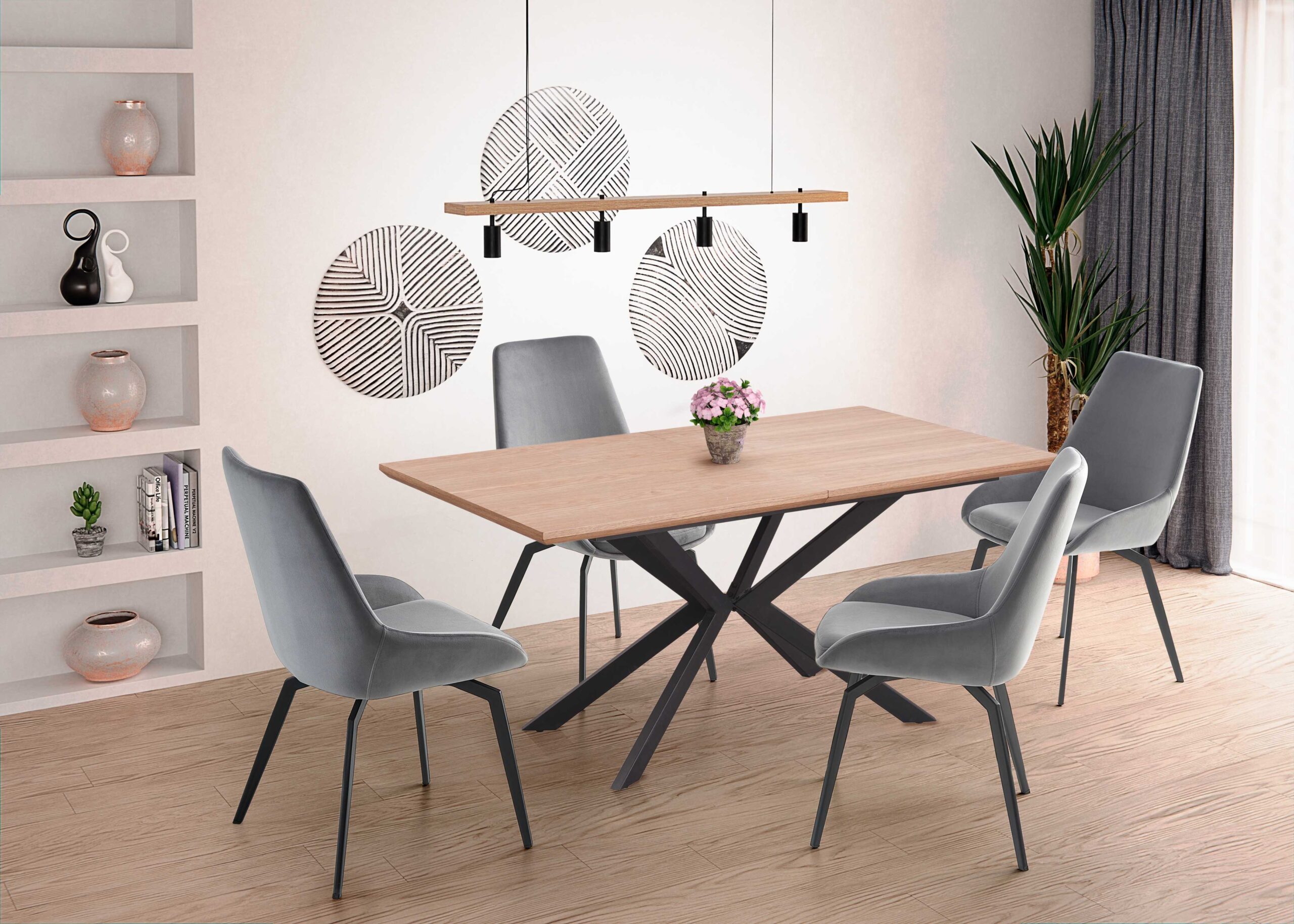 LEGARTO stół rozkładany blat – dąb naturalny, noga – czarny