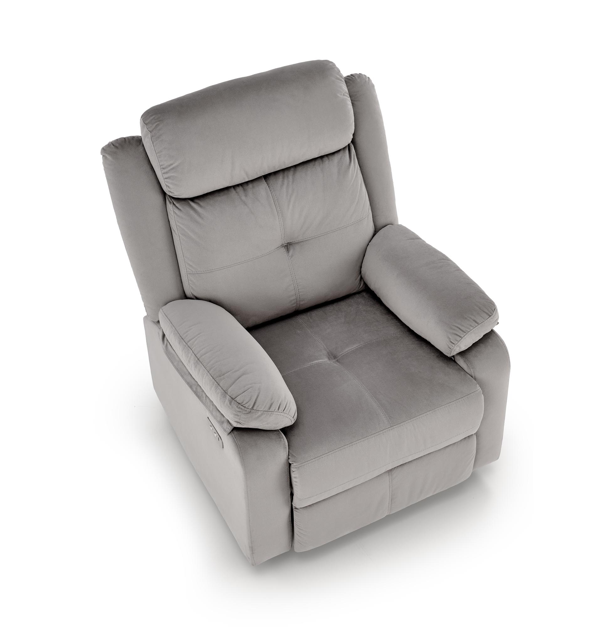 wymiary: 85/95-162/105/45 cm; fotel z funkcją elektrycznego rozkładania / gniazdo USB, materiał: tkanina, kolor popielaty