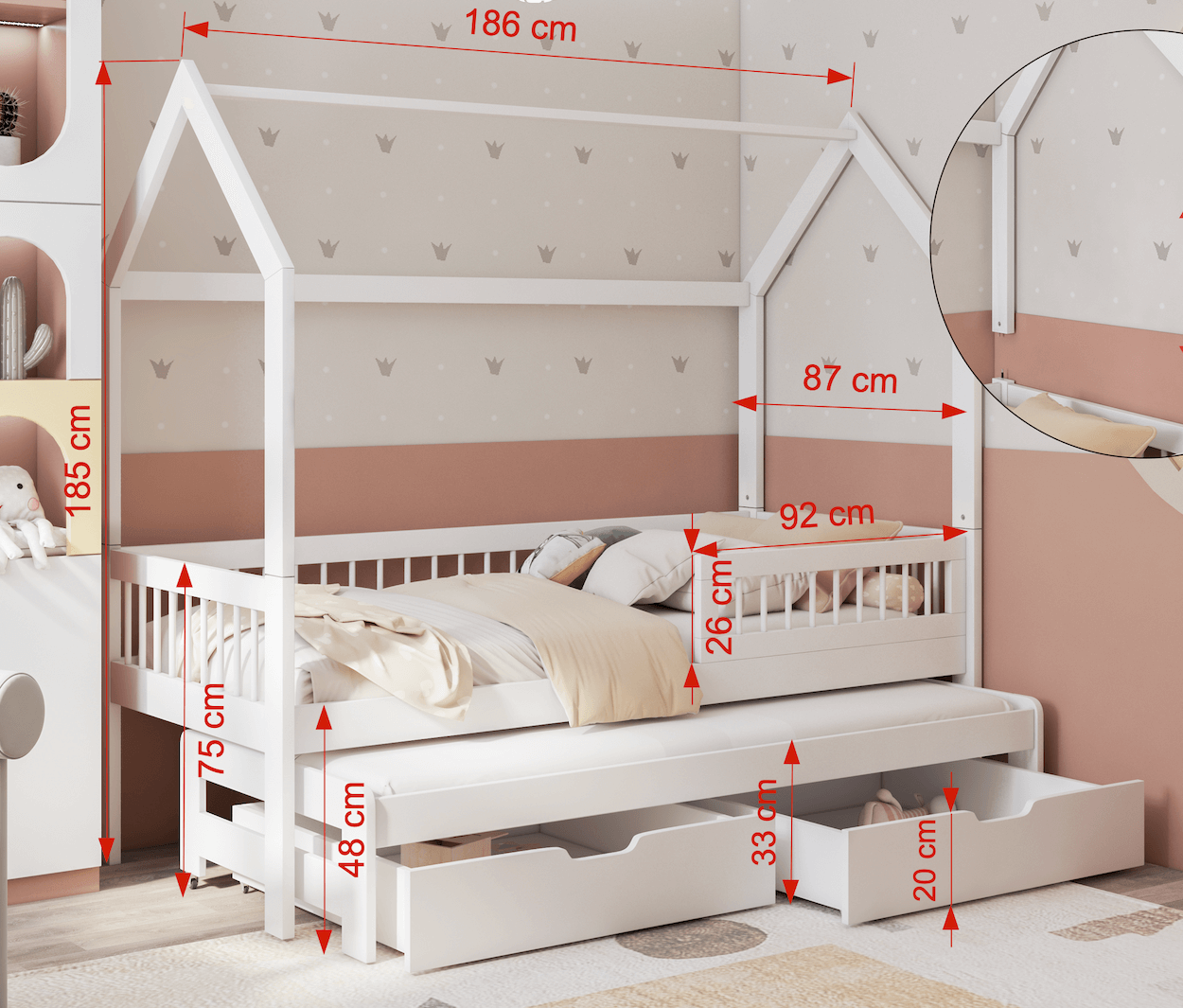 Wymiary zewnętrzne łóżka (dł./szer./wys.) 186x87x185cm