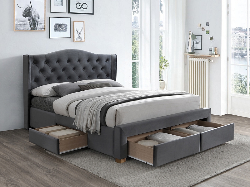 ŁÓŻKO ASPEN II VELVET 160×200 KOLOR SZARY/DĄB TAPICERKA BLUVEL 14
