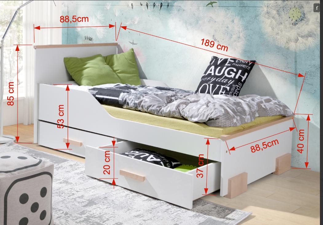 Wymiary zewnętrzne łóżka pod materac 180/80 (dł./szer./wys.) 190x89x85(40)cm – 997 zł