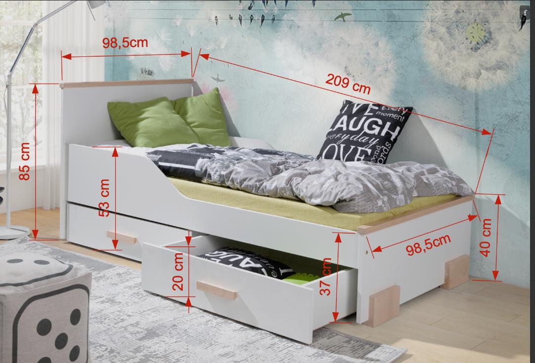 Wymiary zewnętrzne łóżka pod materac 200/90 (dł./szer./wys.) 210x99x85(40)cm – 1052 zł