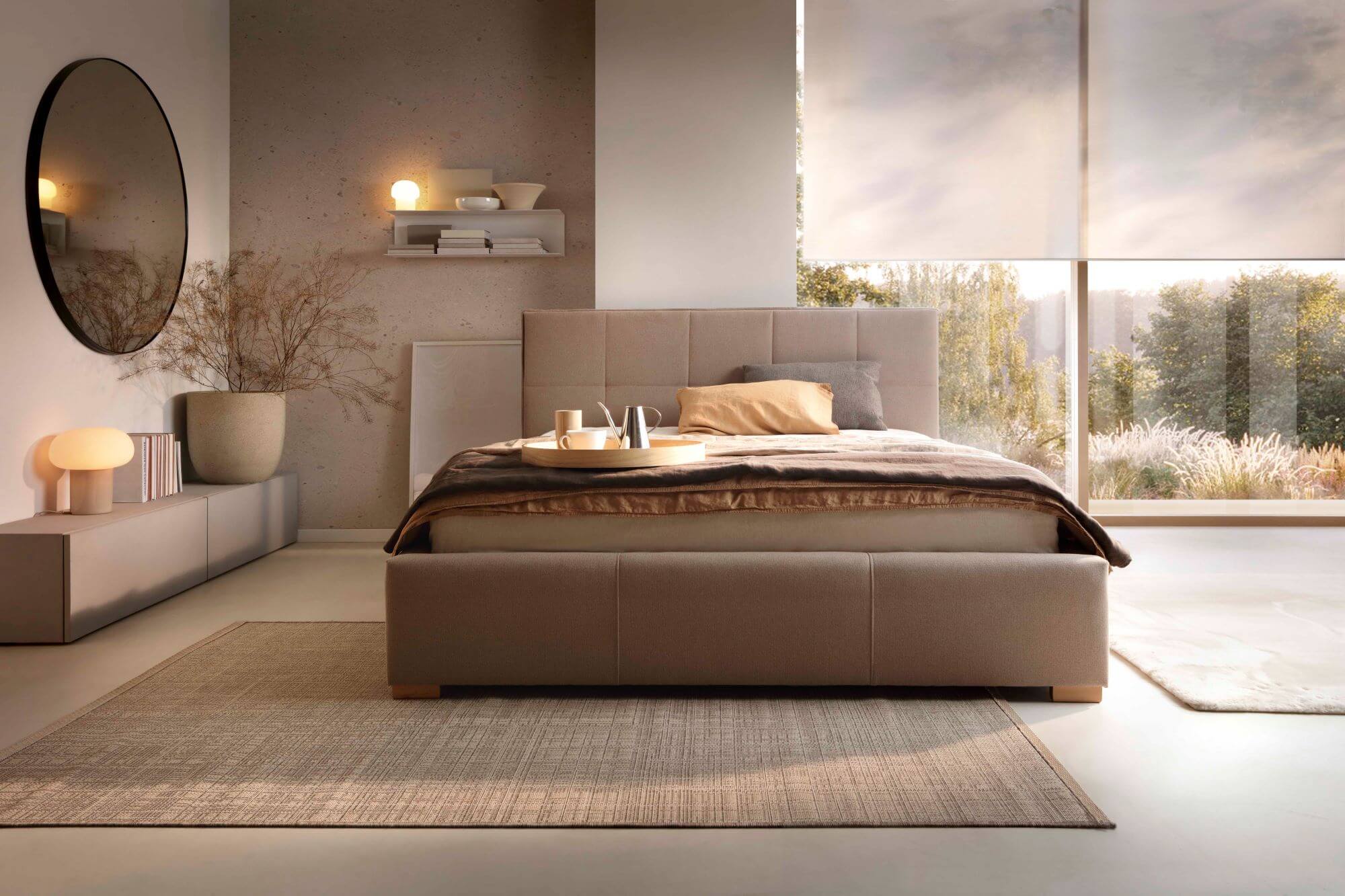 Zagłówek Cortiny jest cieńszy o blisko połowę w porównaniu z innymi modelami łóżek tapicerowanych Comforteo. Płozy łóżka są w tym modelu standardowo węższe. Boczna rama zagłówka (w przypadku Cortiny również nieco zmniejszonego) współtworzy jednolitą powierzchnię z bokiem płozy łóżka, co jest niemożliwe w przypadku pozostałych modeli w wersji Slim. Ze względu na konstrukcję, Cortina ma ogólną długość 216 cm, a w wersji Slim wynosi ona 211 cm. W przypadku tego modelu nie ma więc mowy o niewykorzystanej przestrzeni. Elegancką całość dopełnia dyskretna falbana dookoła krawędzi zagłowia.