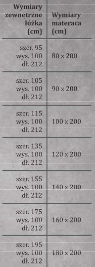 | Wymiary w cm | długość: 212 | szerokość: 95 | wysokość: 100 |