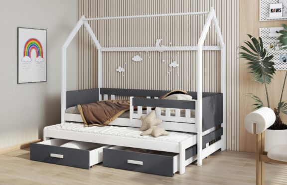 DORES – łóżko 1 osobowe z barierką, w modelu tym rama łóżka wykonana jest z drewna sosnowego w kolorze biały akryl (zdjęcie główne). Łóżko to można wykonać w innych połączeniach, dostępna kolorystyka poniżej. Materac nie występuje w komplecie z łóżkiem, należy domówić go oddzielnie.