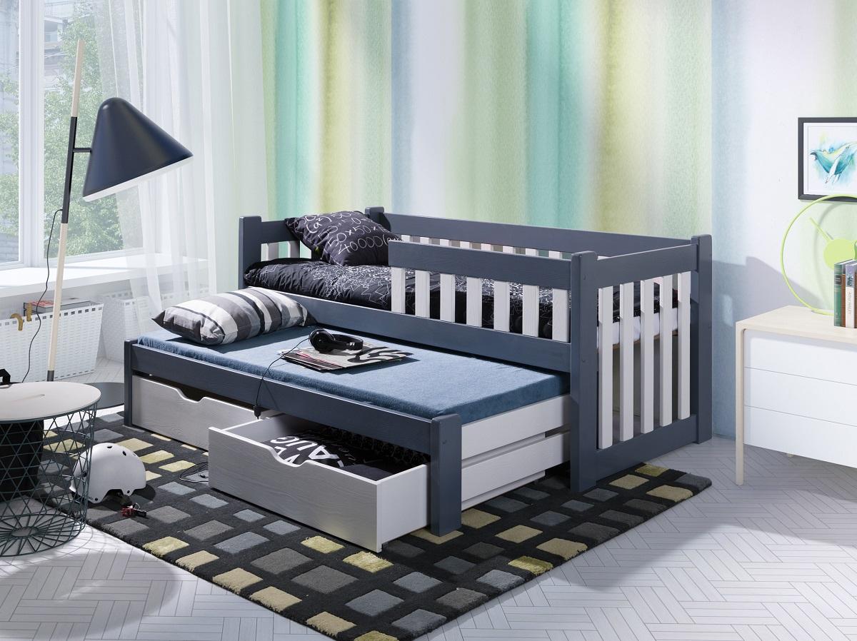 Dolny materac i szuflady wysuwają się na rolkach jezdnych.