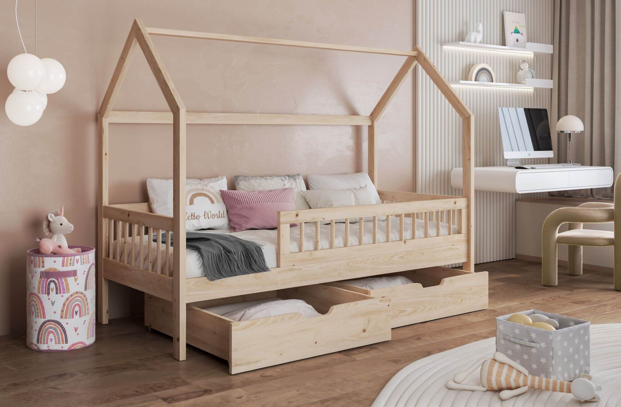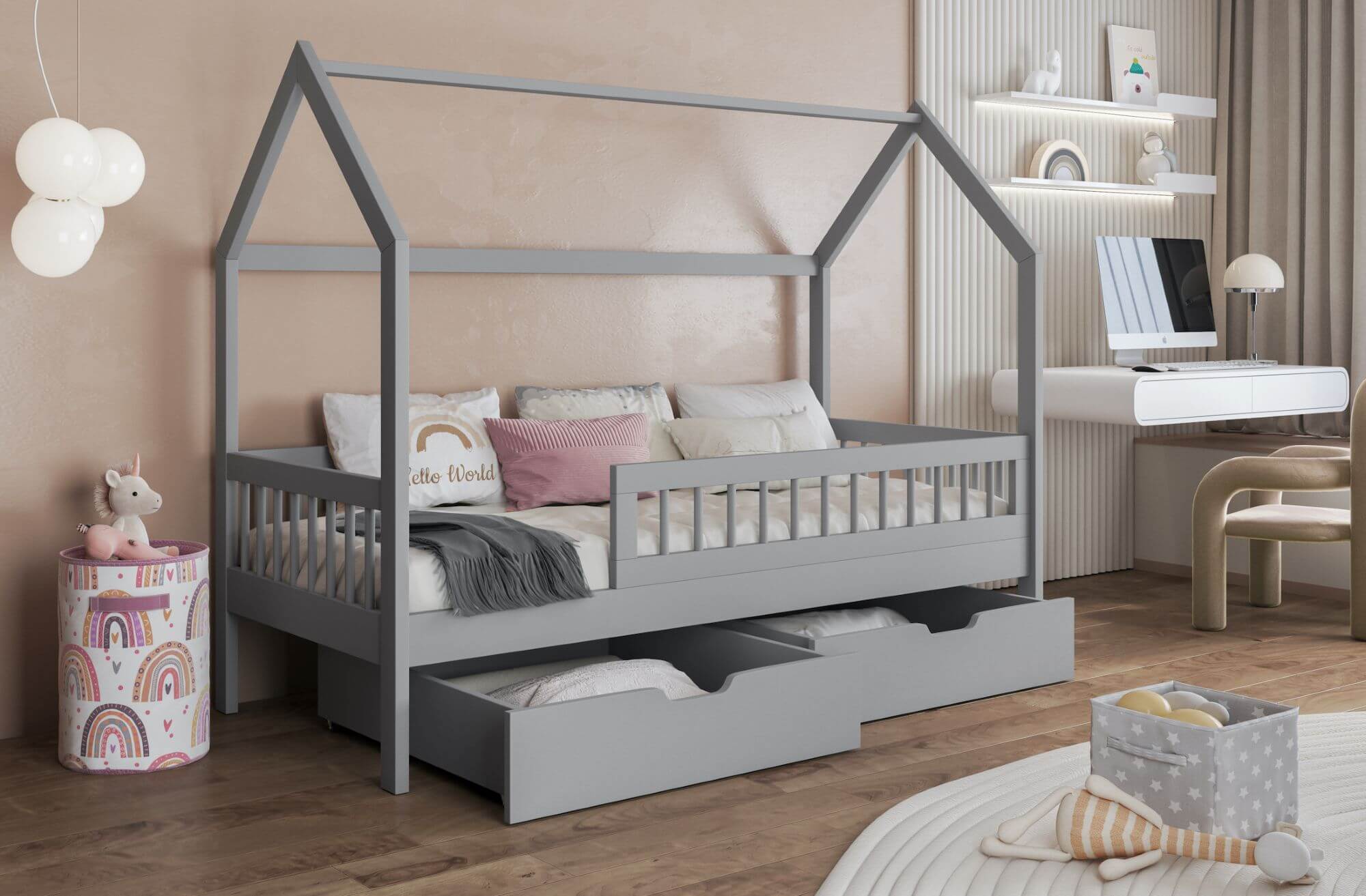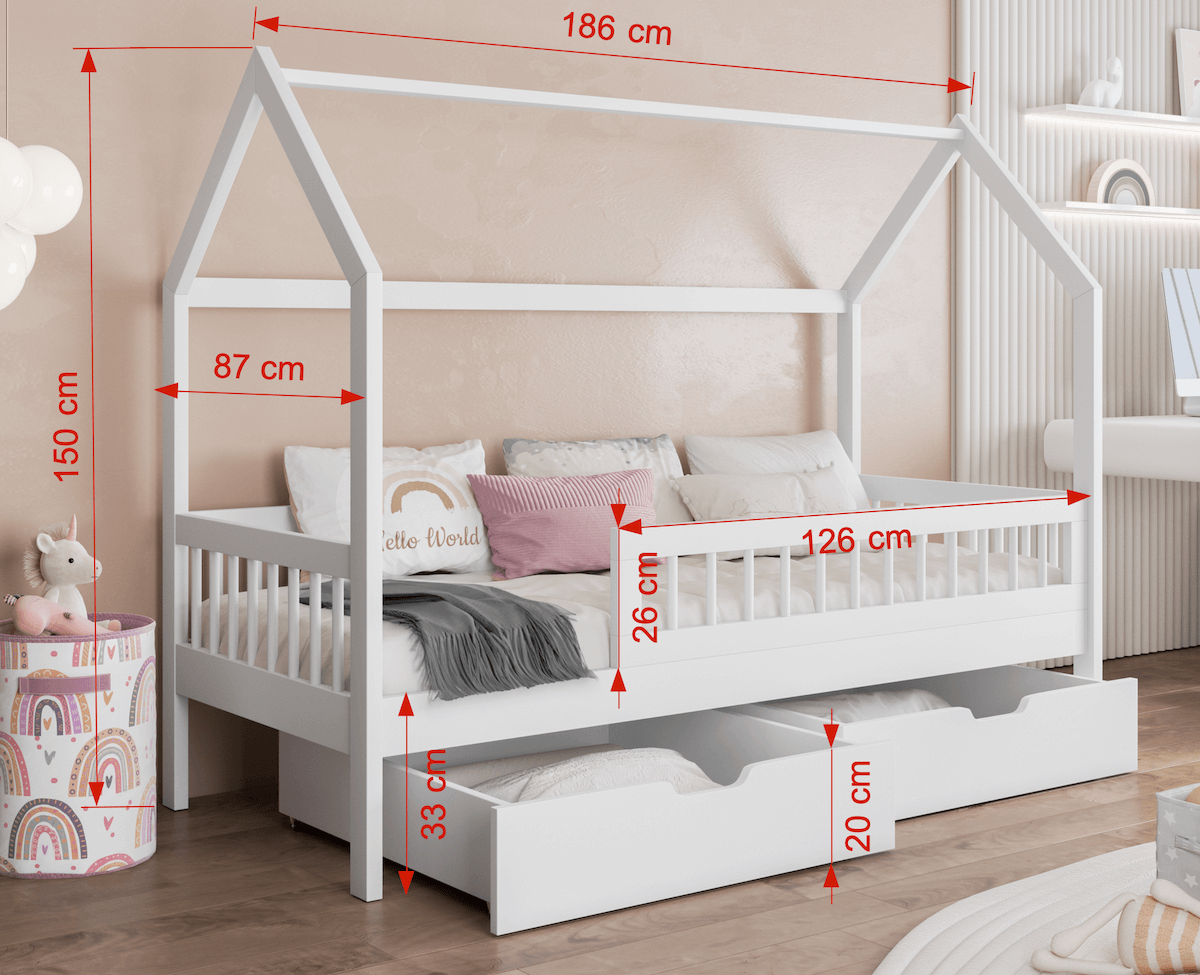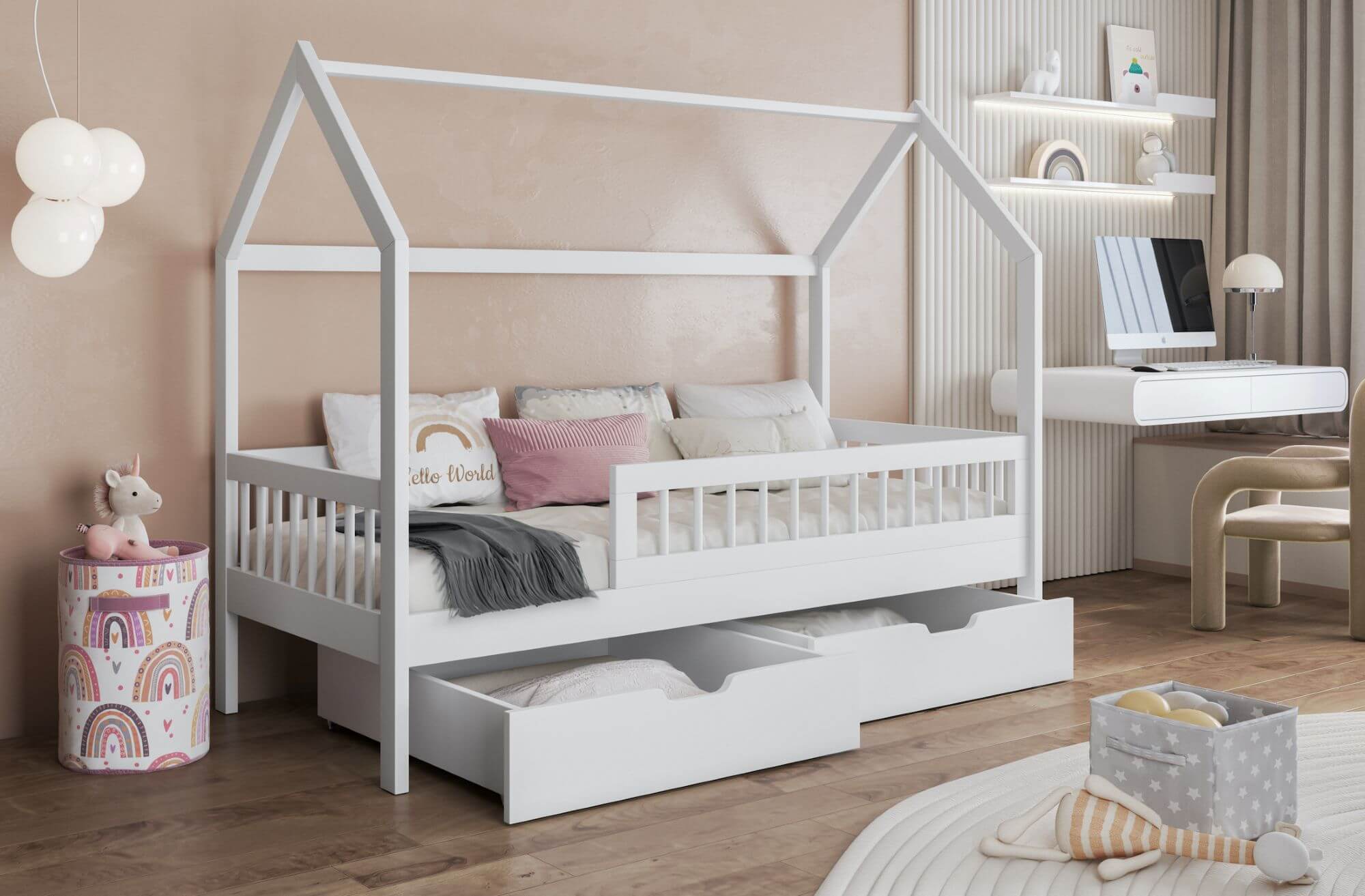 GAJA – łóżko 1 osobowe z barierką, w modelu tym rama łóżka wykonana jest z drewna sosnowego w kolorze biały akryl (zdjęcie główne). Łóżko to można wykonać w innych połączeniach, dostępna kolorystyka poniżej. Materac nie występuje w komplecie z łóżkiem, należy domówić go oddzielnie.