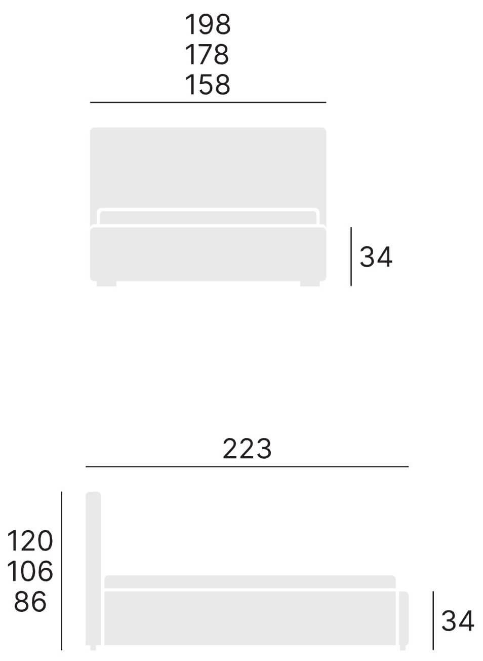 Wymiary w cm długość: 223 | szerokość: 80-180 | wysokość: 106