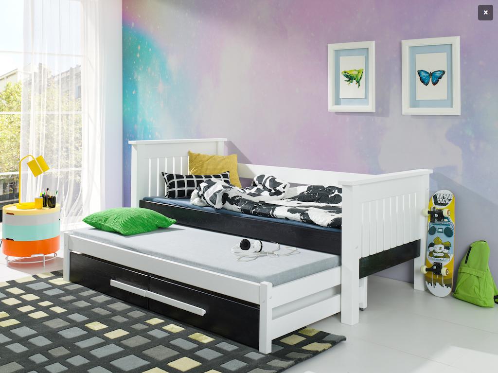 Piękne łóżko piętrowe niskie TELMO w kolorze biały akryl/wenge. Dzięki wysuwanej dolnej części na rolkach jezdnych można zaoszczędzić dużo przestrzeni w pokoju. Łóżko zostało zaprojektowane dla dwóch osób. Bardzo dobre rozwiązanie, gdy chce się mieć dodatkowe miejsce do spania dla niespodziewanego gościa.