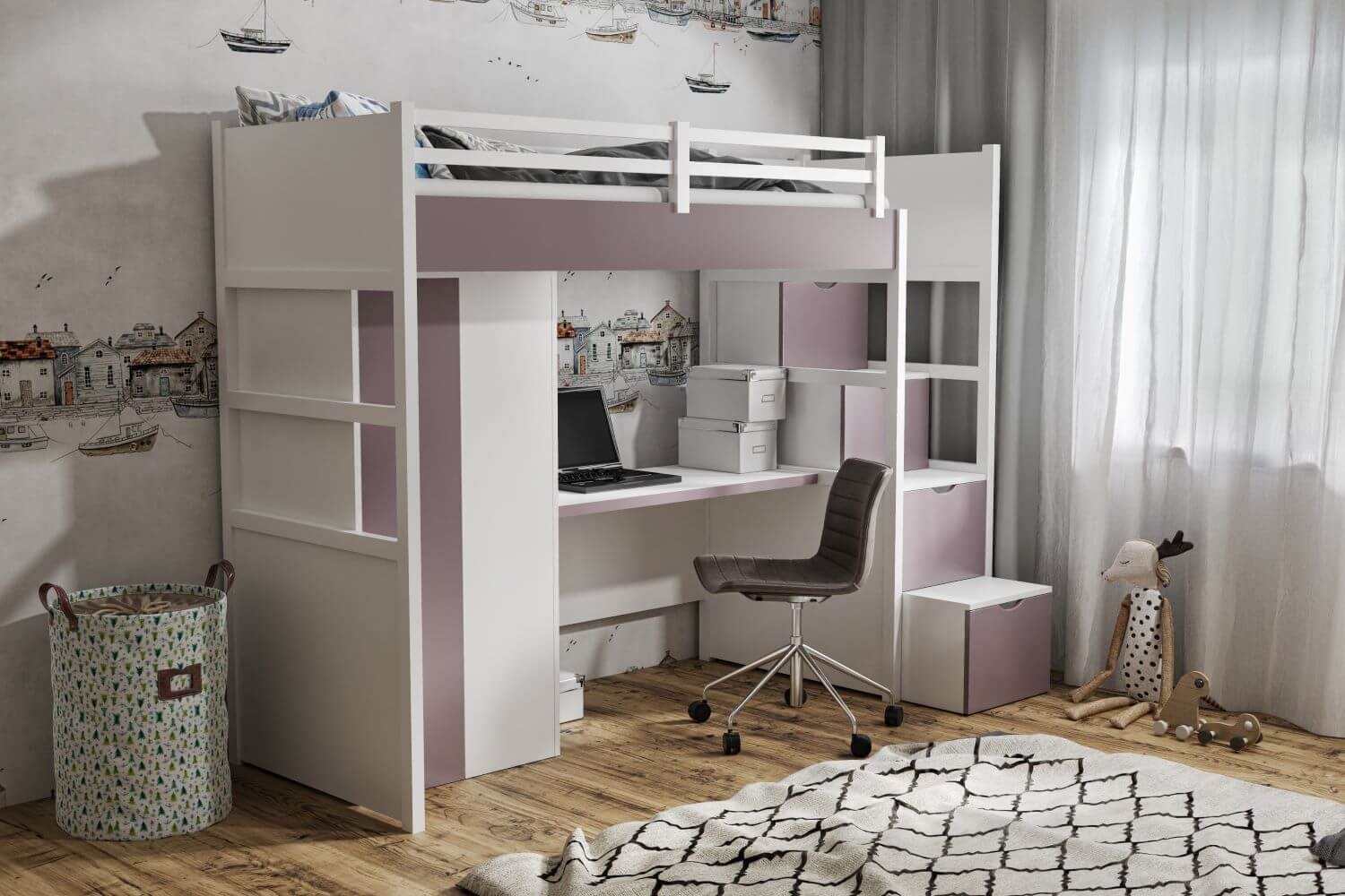 Rama łóżka w modelu TRISTAN została wykonana z drewna sosnowego w kolorze biały akryl, elementy z płyty w kolorze trufel (dostępne również w innych kolorach) zostały oklejone obrzeżem ABS. Dostępna kolorystyka poniżej. Materac nie występuje w komplecie z łóżkiem, należy domówić go oddzielnie.