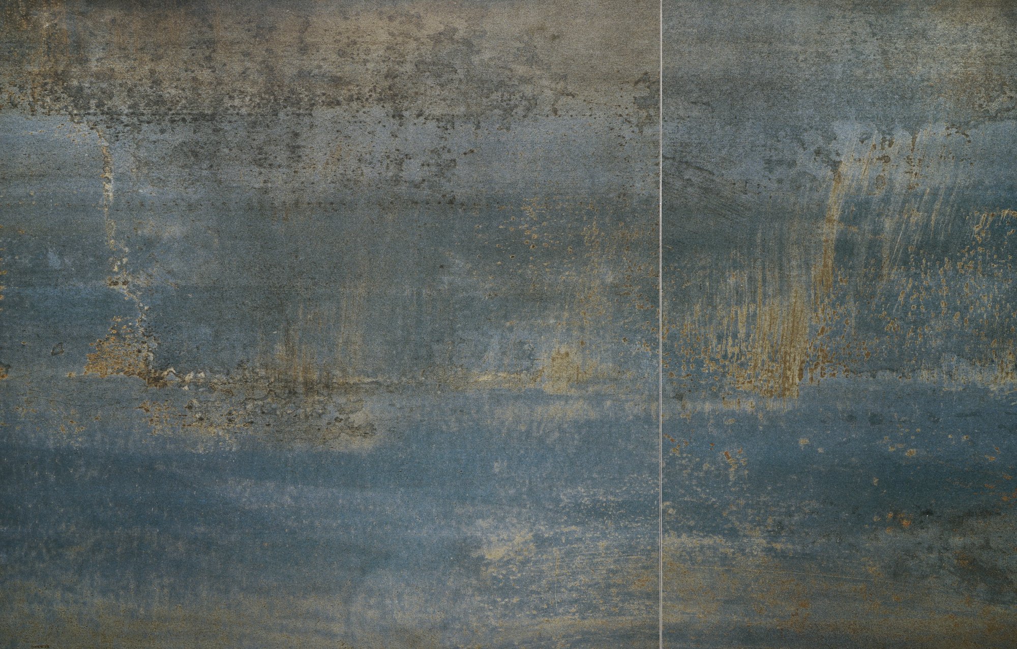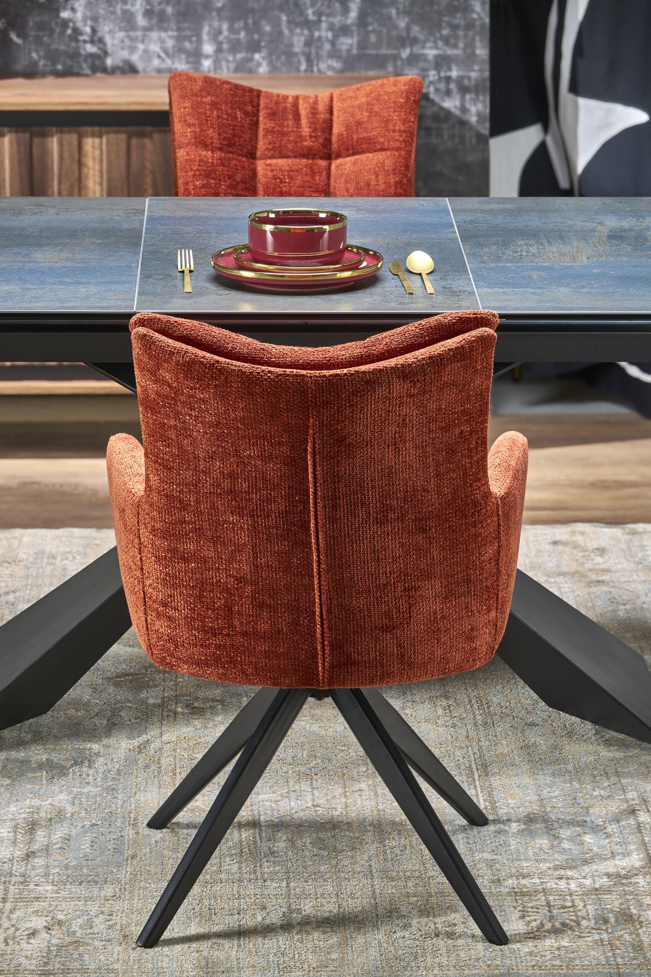wymiary: 180-230/90/76/117 cm; stół rozkładany, materiał: ceramika / szkło / stal malowana proszkowo, kolor: blat – niebieski marmur, nogi – czarny