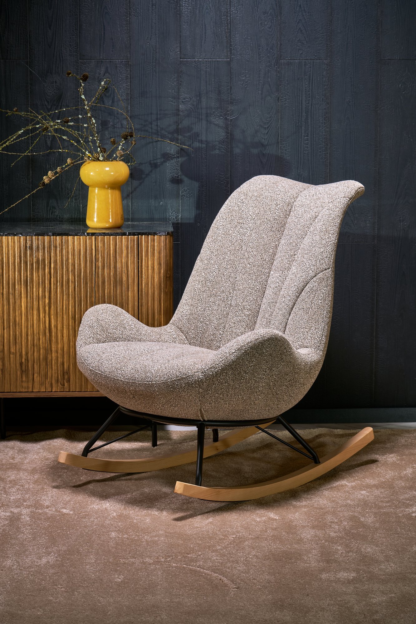 wymiary: 80/100/100/49 cm, funkcja kołyski, materiał: tkanina AMICASA / stal malowana proszkowo / drewno lite, kolor: ciemny beż #02