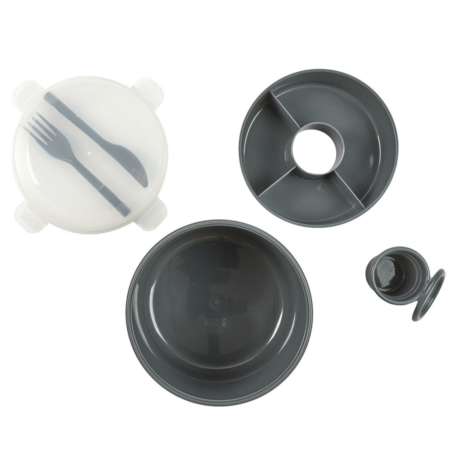 Okrągły lunch box to idealne rozwiązanie dla osób poszukujących praktycznego i funkcjonalnego sposobu przechowywania posiłków w podróży, do pracy lub na piknik. Wykonany z trwałego plastiku, ten lunch box zapewnia wygodę i długotrwałą użyteczność. Jedną z głównych cech tego okrągłego lunch boxa jest jego przykrywka z zatrzaskami, które gwarantują bezpieczne zamknięcie i utrzymanie świeżości zawartości. Lunch box został wyposażony w praktyczne akcesoria, takie jak plastikowy nóż i widelec, które są przymocowane wewnątrz pudełka. Dzięki temu masz wszystko, czego potrzebujesz, aby wygodnie spożywać posiłki w dowolnym miejscu. Dodatkowym atutem jest wkład podzielony na 4 komory, które umożliwiają oddzielenie różnych składników i zachowanie ich świeżości. Pokrywka lunch boxa jest przezroczysta, co umożliwia łatwe i szybkie rozpoznanie zawartości bez konieczności otwierania. Można myć w zmywarce.