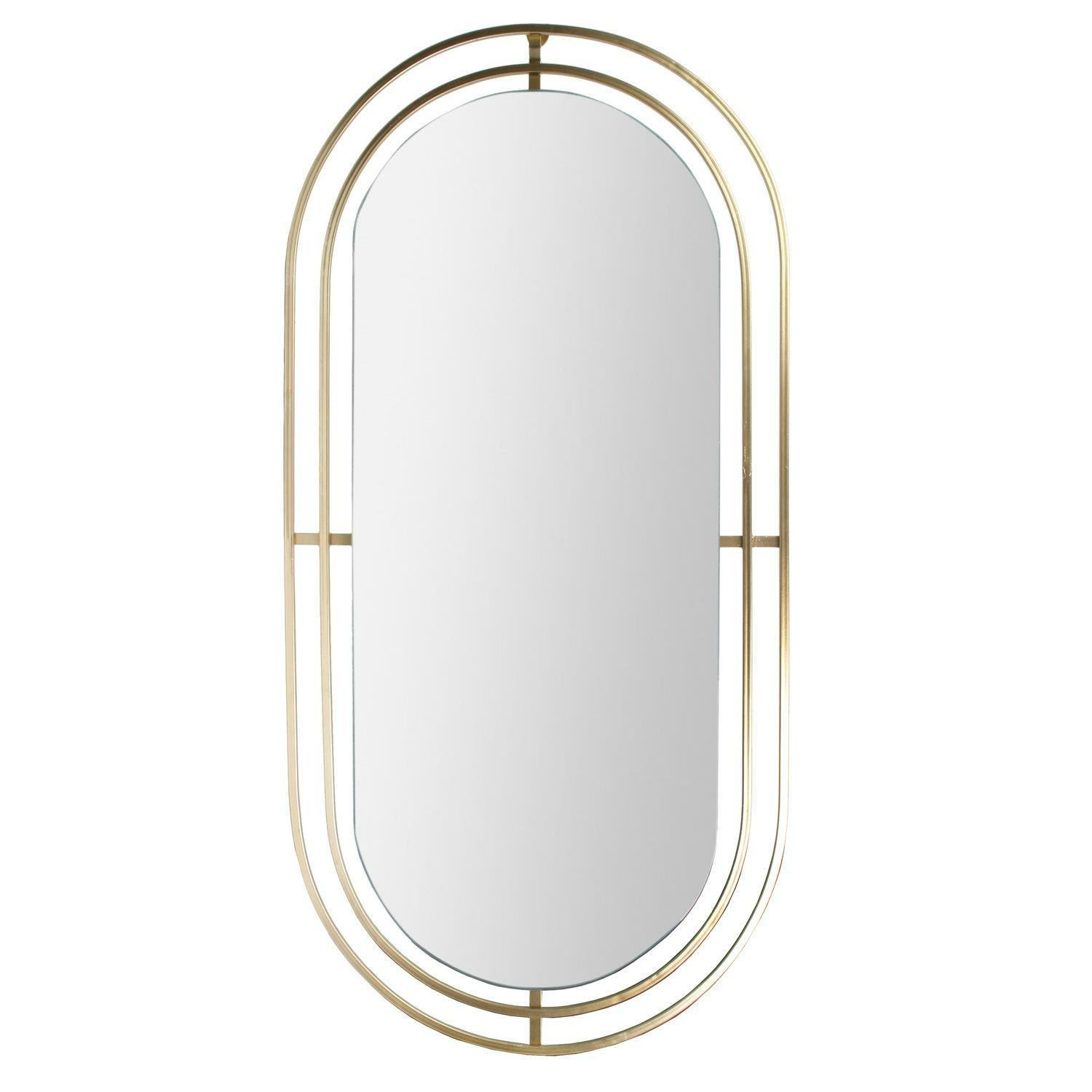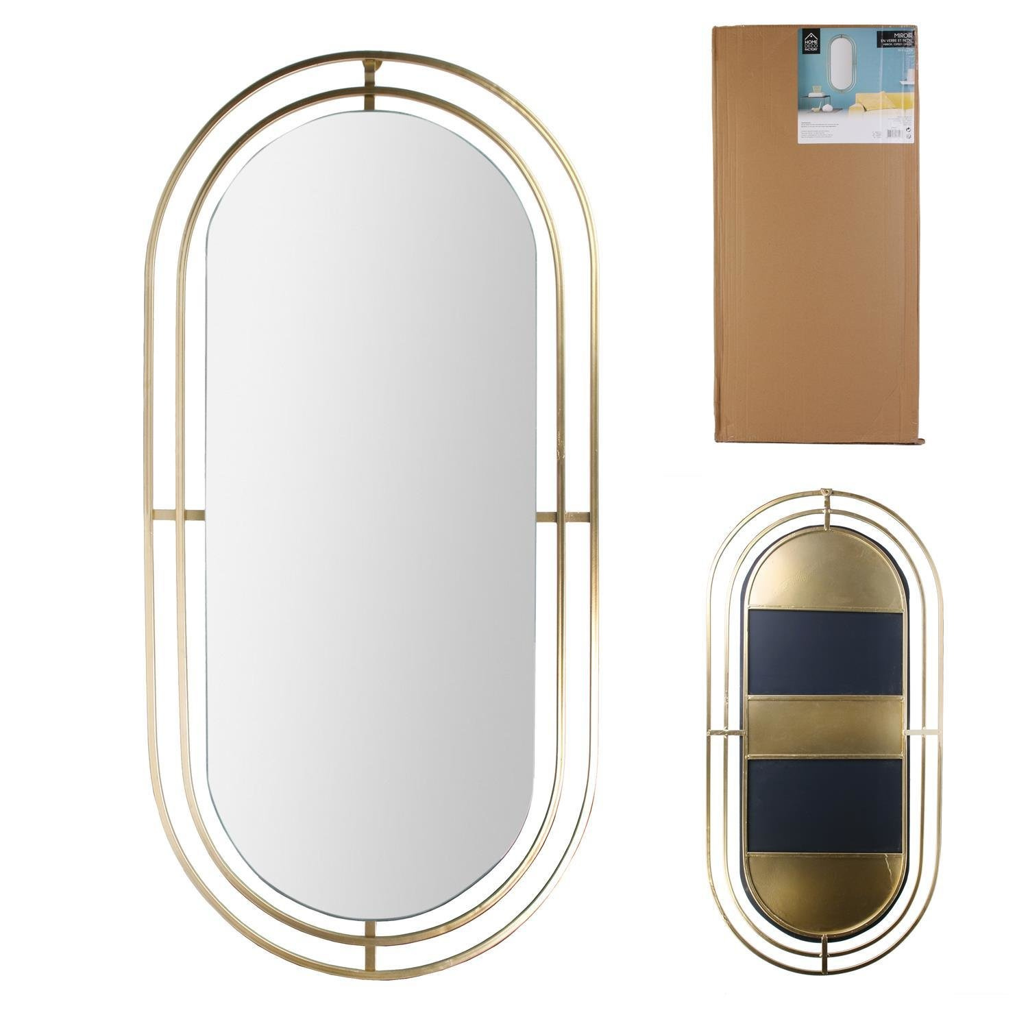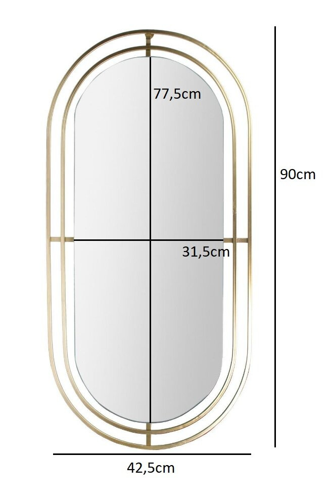 Wzbogać ścianę domu stylowym lustrem Avec w stylu art deco. Lustro w owalnej metalowej ramie malowanej proszkowo na złoto to modny dodatek do przedpokoju lub sypialni. Wysokie na aż 90 cm lustro jest wyrazistym dodatkiem. Wymiar zwierciadła: 31,5×77,5cm