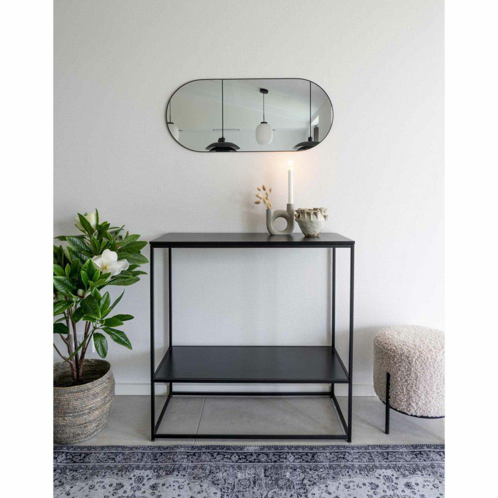 Lustro o owalnym kształcie w czarnej owalnej ramie to dodatek do nowoczesnego przedpokoju lub łazienki. Lustro ścienne o wysokości 80 cm to modny dodatek, który ozdobi pustą ścianę. Rama malowana proszkowo na czarno, dzięki swojej wąskiej formie nie zakłóca kompozycji i sprawia, że lustro wygląda nowocześnie i ponadczasowo.