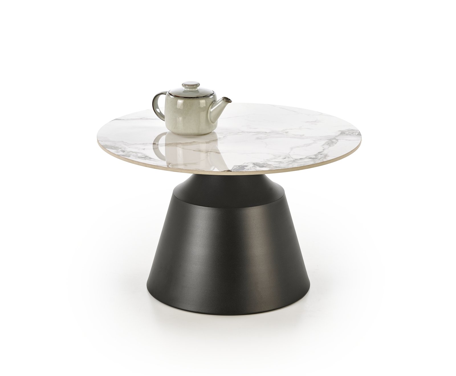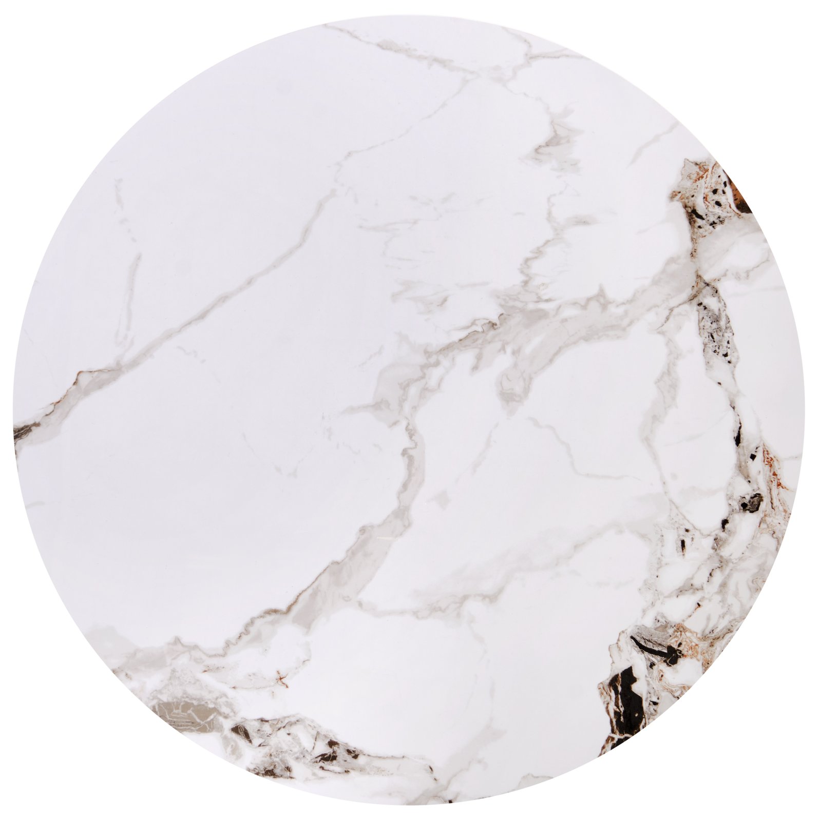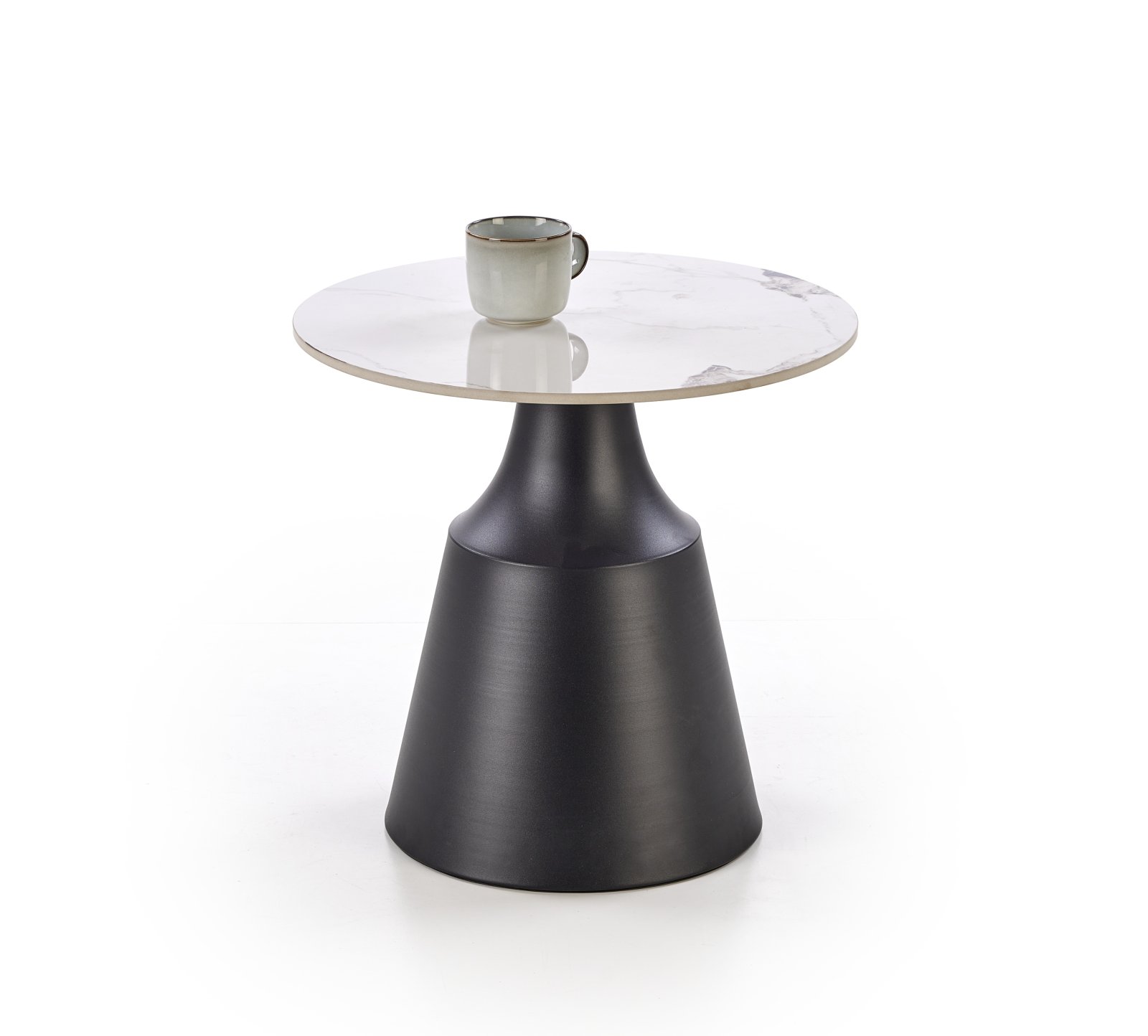 wymiary: fi70/43 cm, fi50/48 cm, zestaw 2 ław, materiał: spiek / stal malowana proszkowo, kolor: biały marmur – czarny
