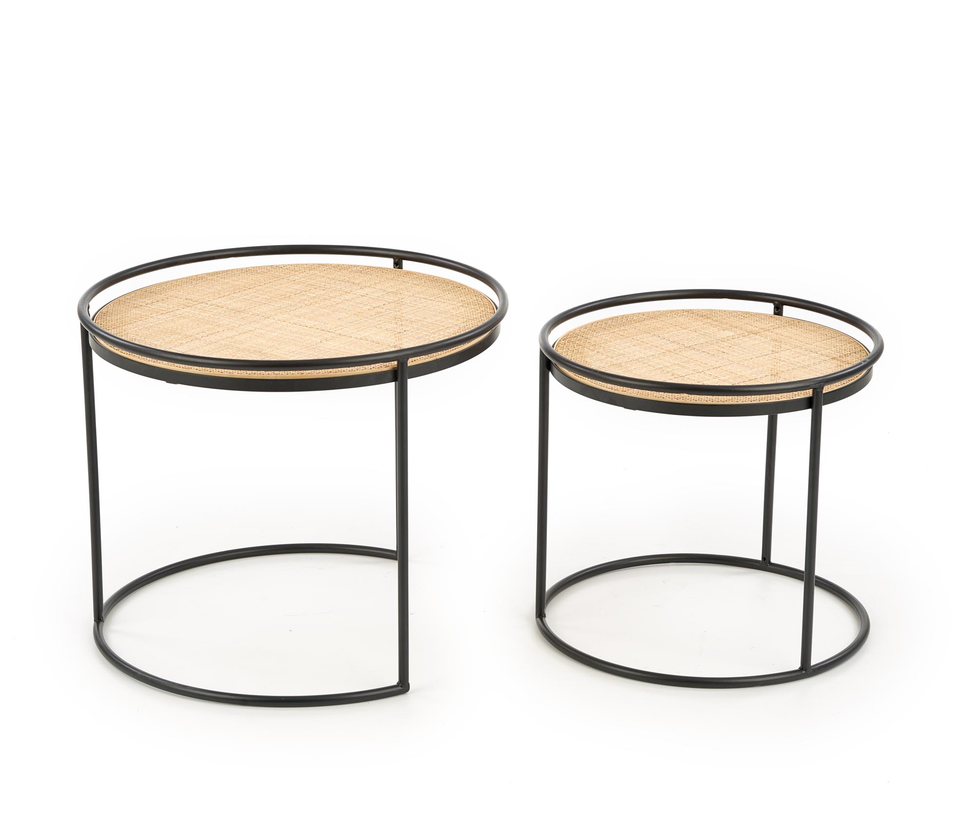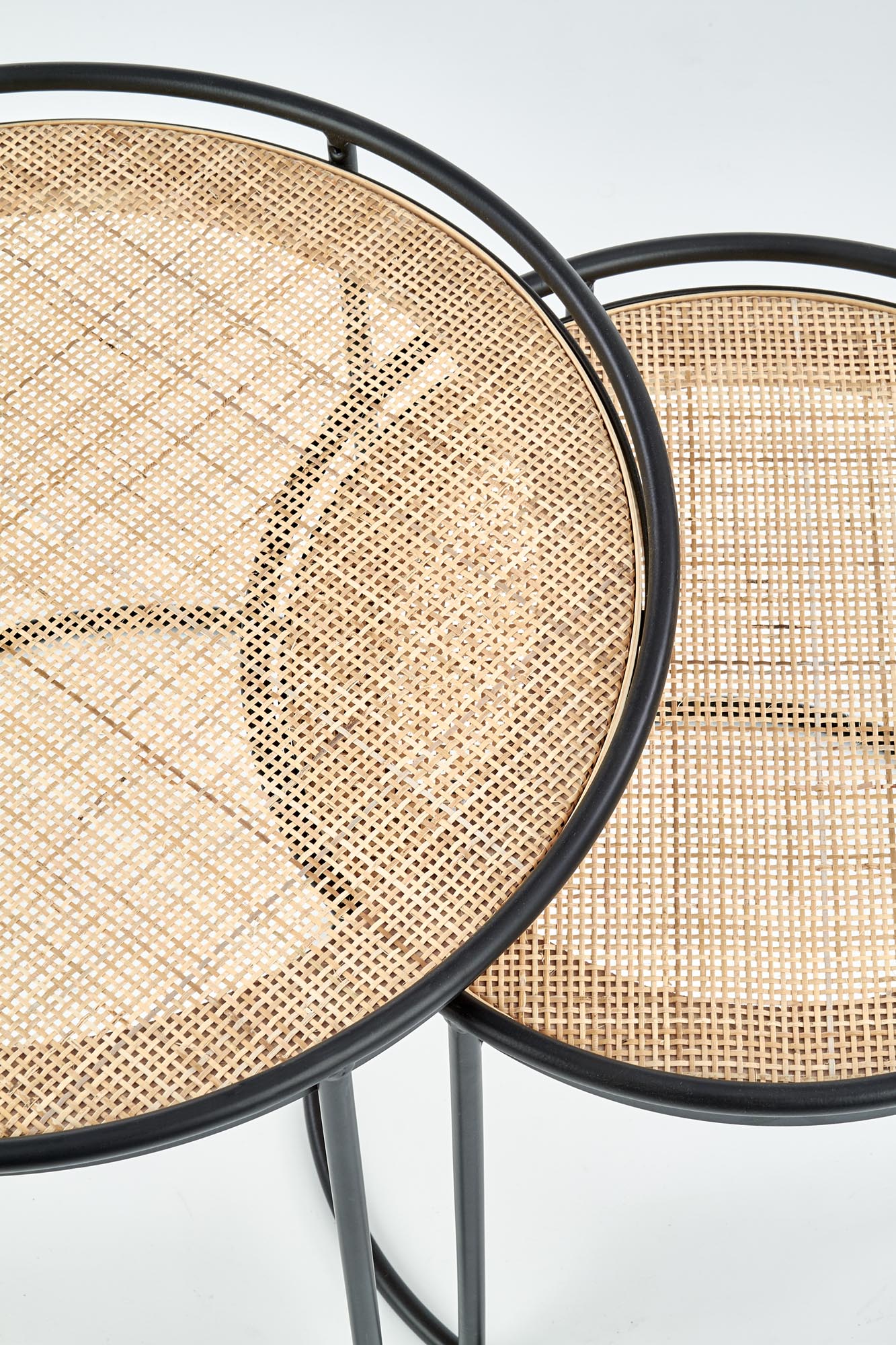 wymiary: 51/42, 41/37 cm, materiał: rattan naturalny / stal malowana proszkowo, kolor: naturalny – czarny