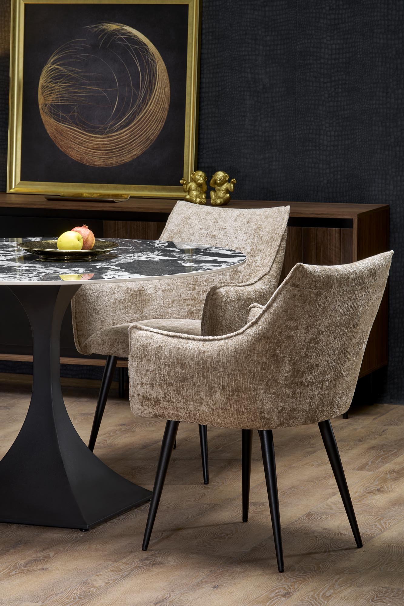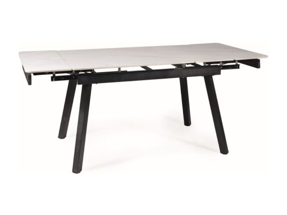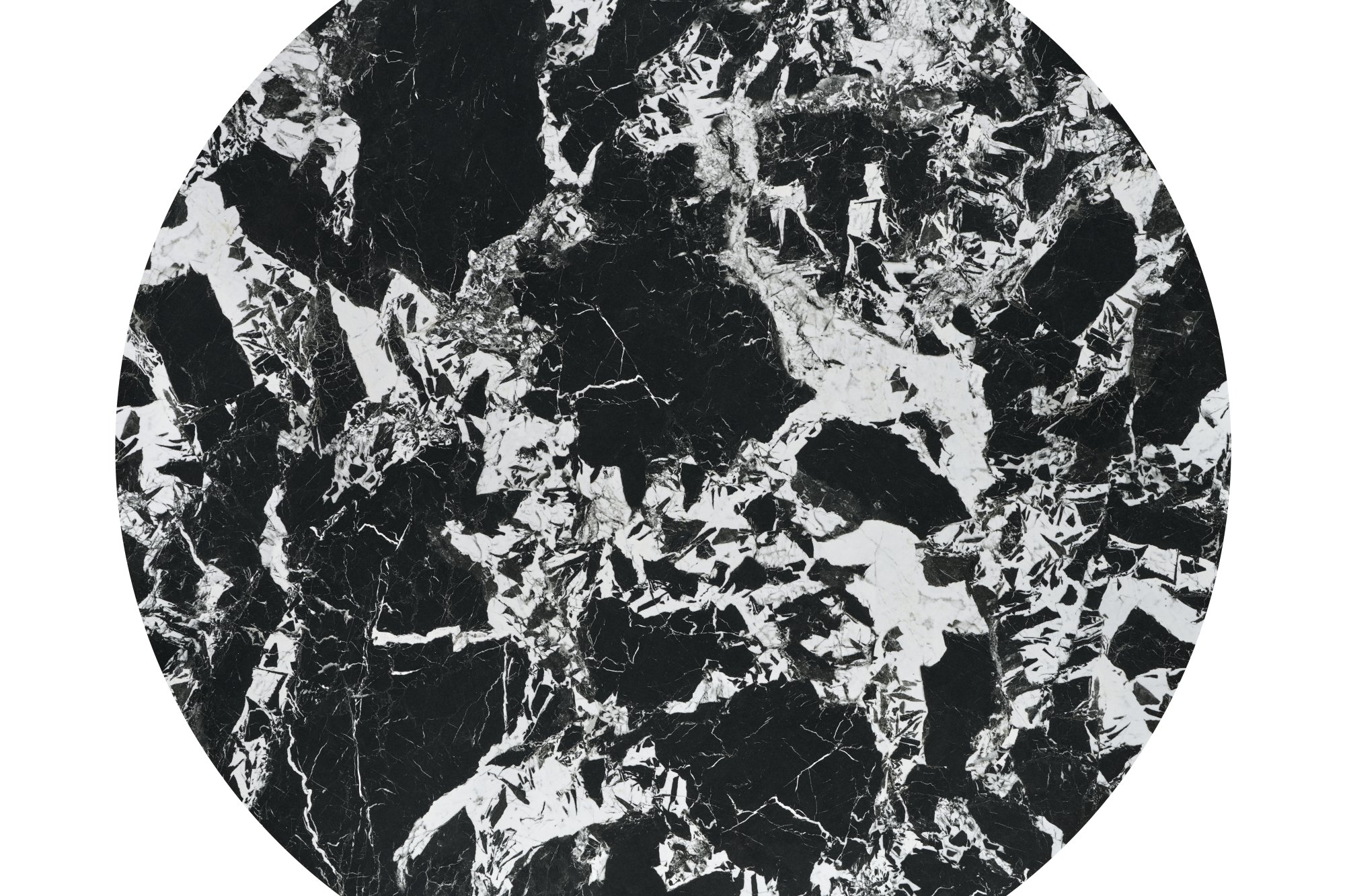 wymiary: 120/77 cm; materiał: spiek / stal malowana proszkowo, kolor: blat – czarny marmur, noga – czarny