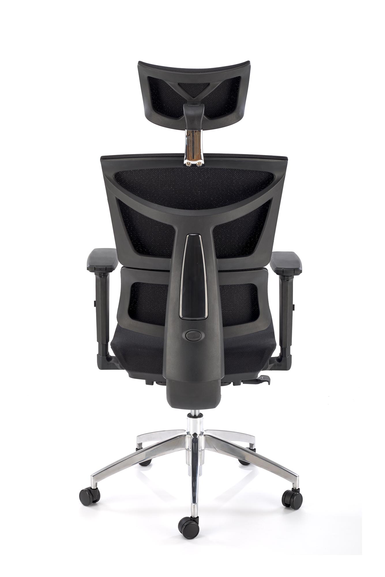 wymiary: 65/64/121-140/47-57 cm; mechanizm synchroniczny / regulowana wysokość oparcia / regulowane podłokietniki / regulowany zagłówek / aluminiowa podstawa / wysuwane siedzisko, siatka, kolor: czarny
