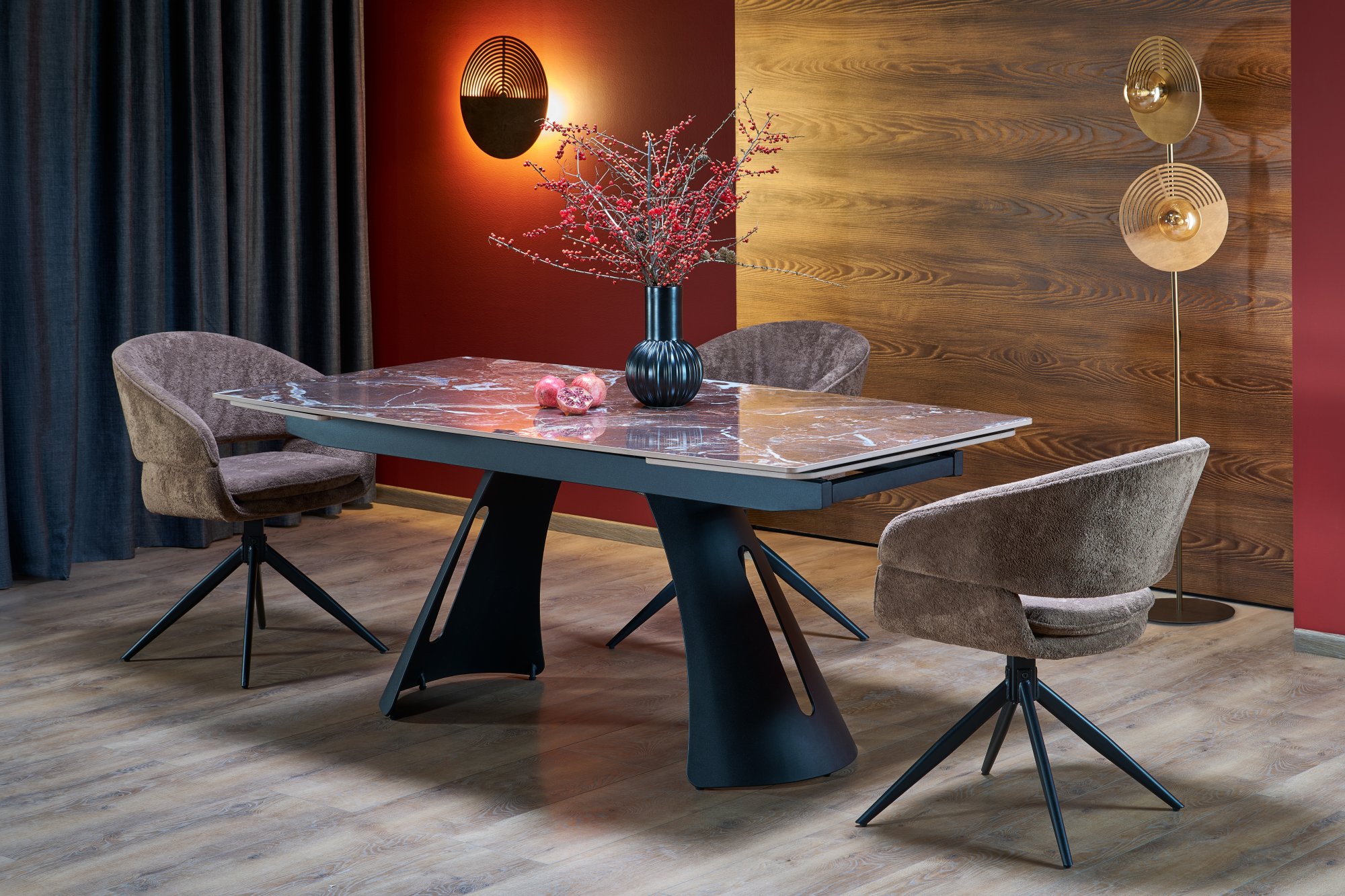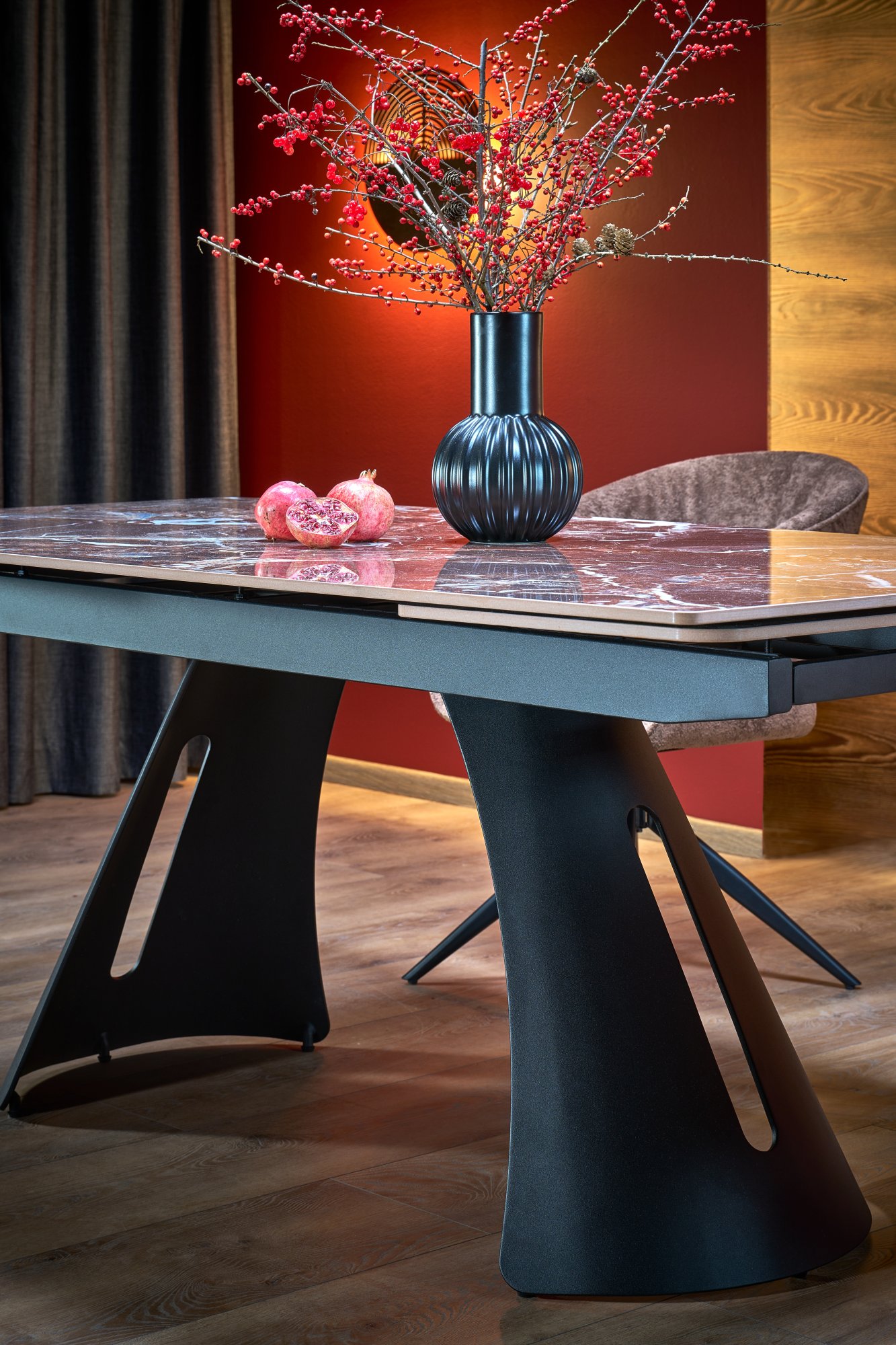 MARVIN stół rozkładany, blat – bordowy marmur, noga – czarny