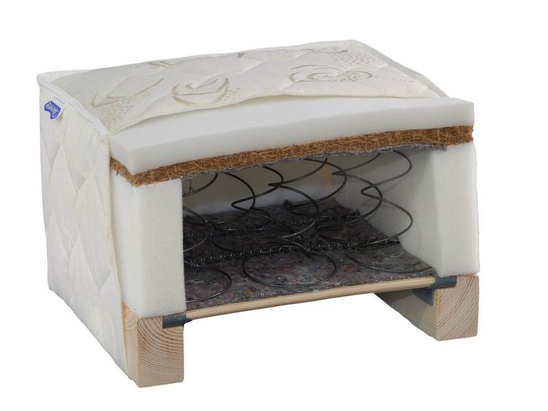 Wkład: materac sprężynowo-kokosowy z pianką poliuretanową na stałe połączony ze stelażem.