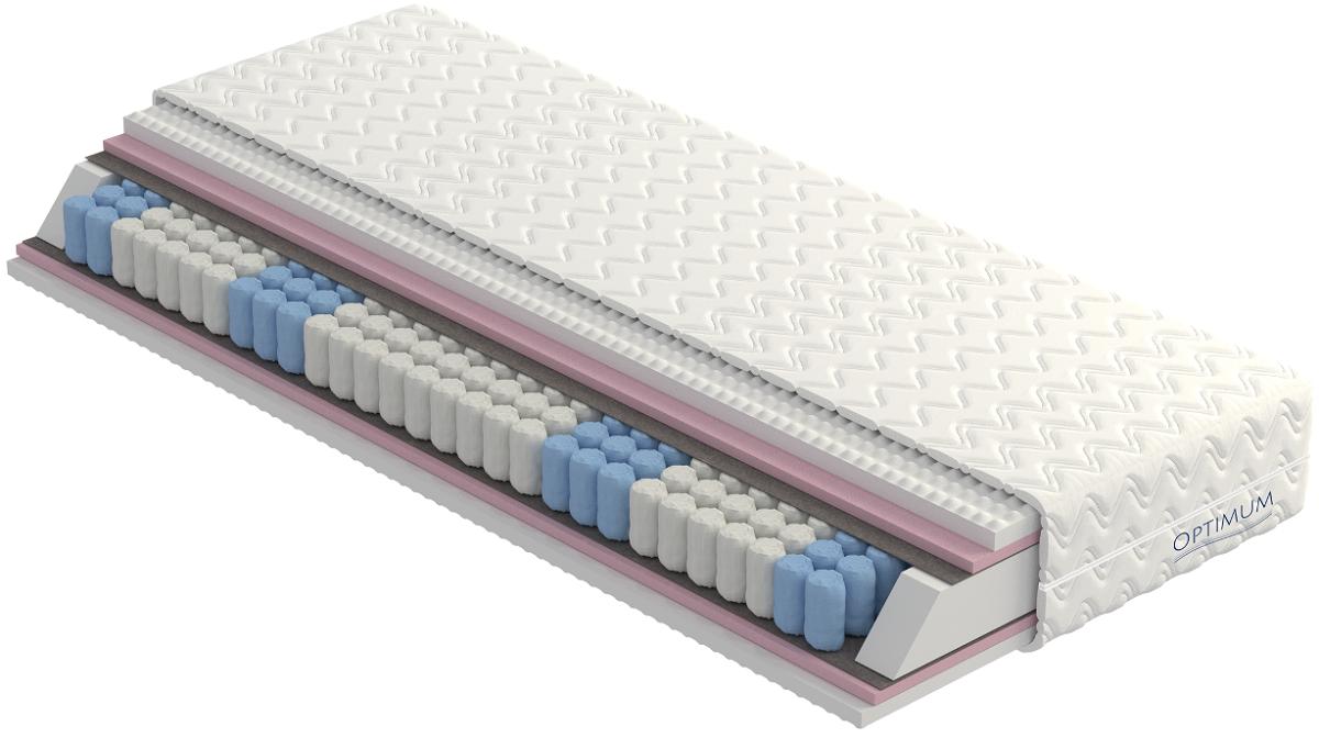 Wkład: zawiera sprężyny kieszeniowe 7-strefowe o większej średnicy (około 275 sprężyn na m2), przekładki tapicerskie, płyty z pianki poliuretanowej T-30 oraz piankę wysokoelastyczną HR profilowaną.