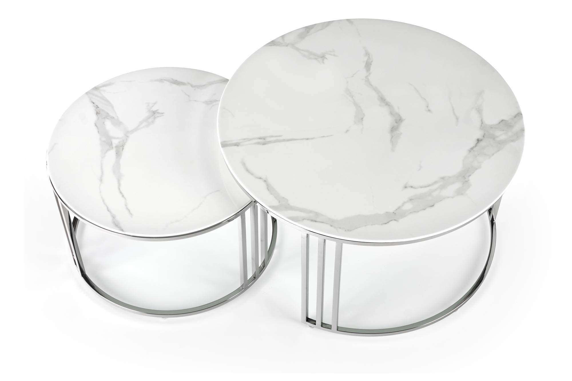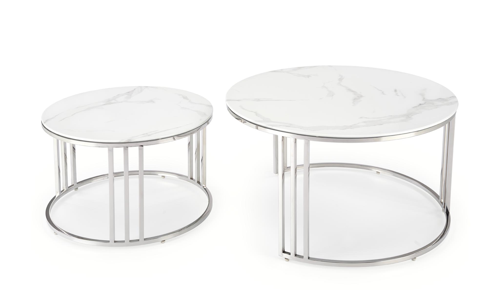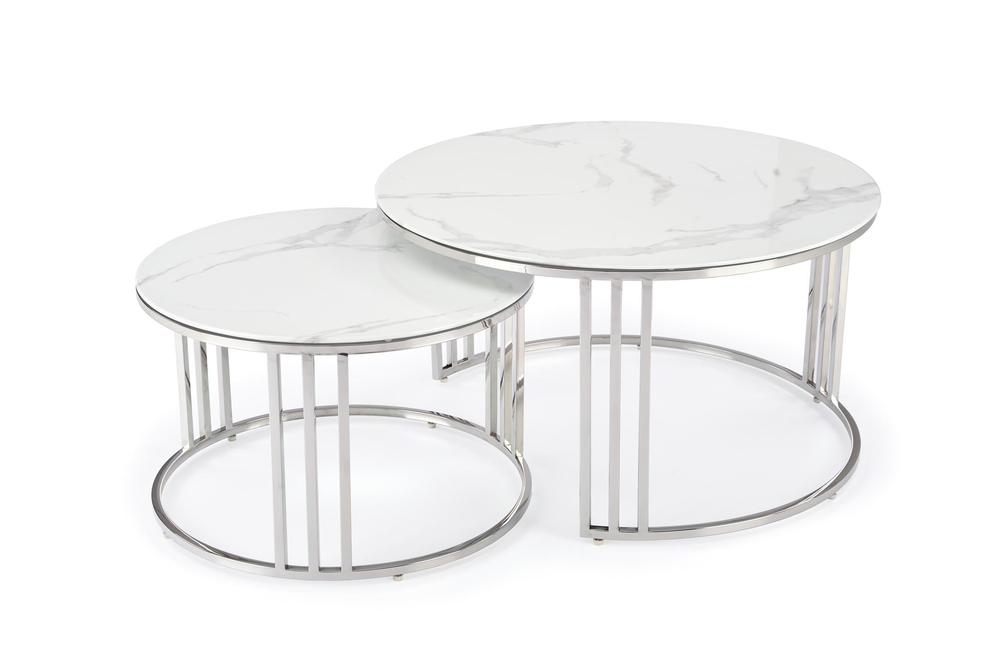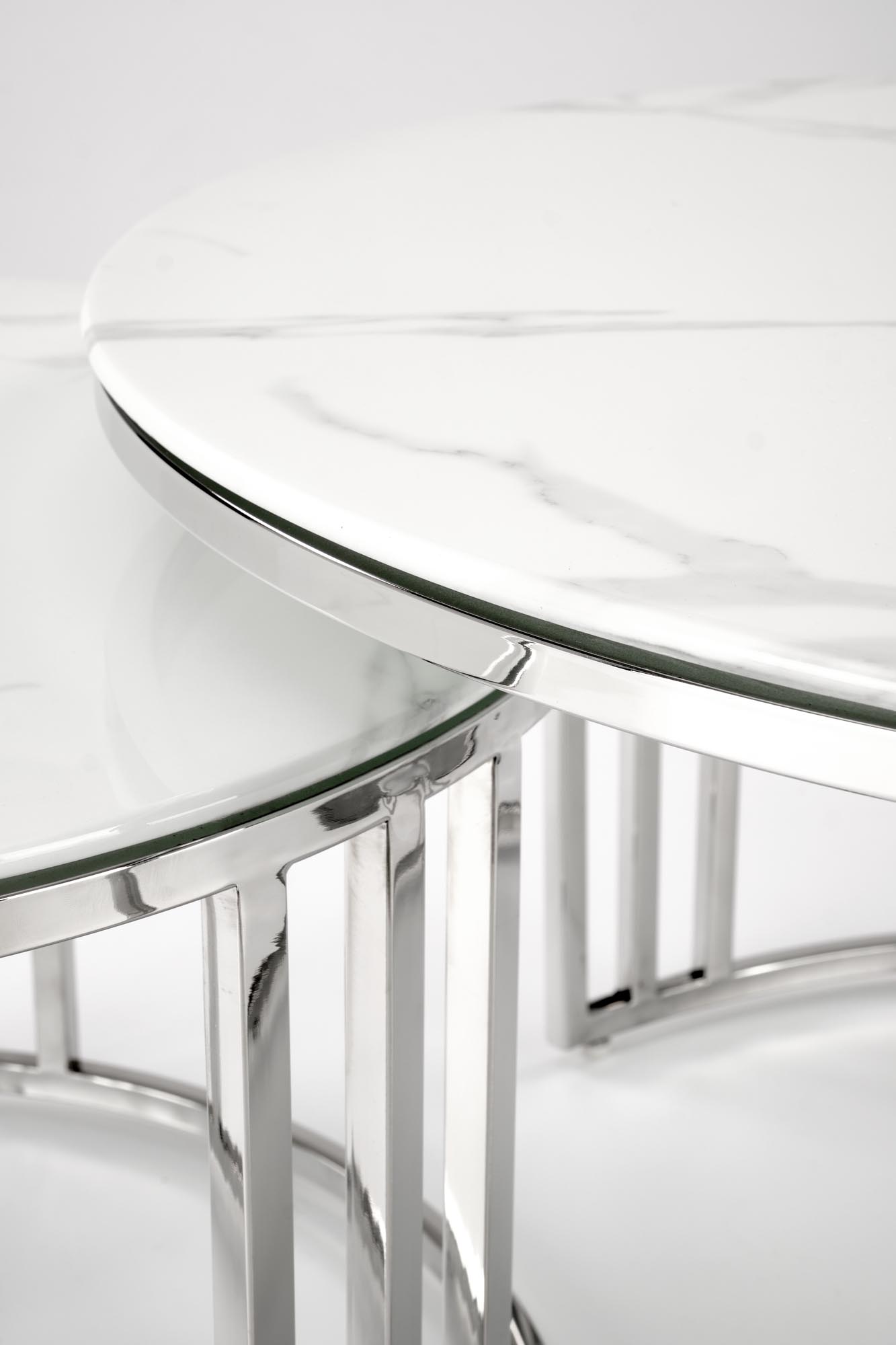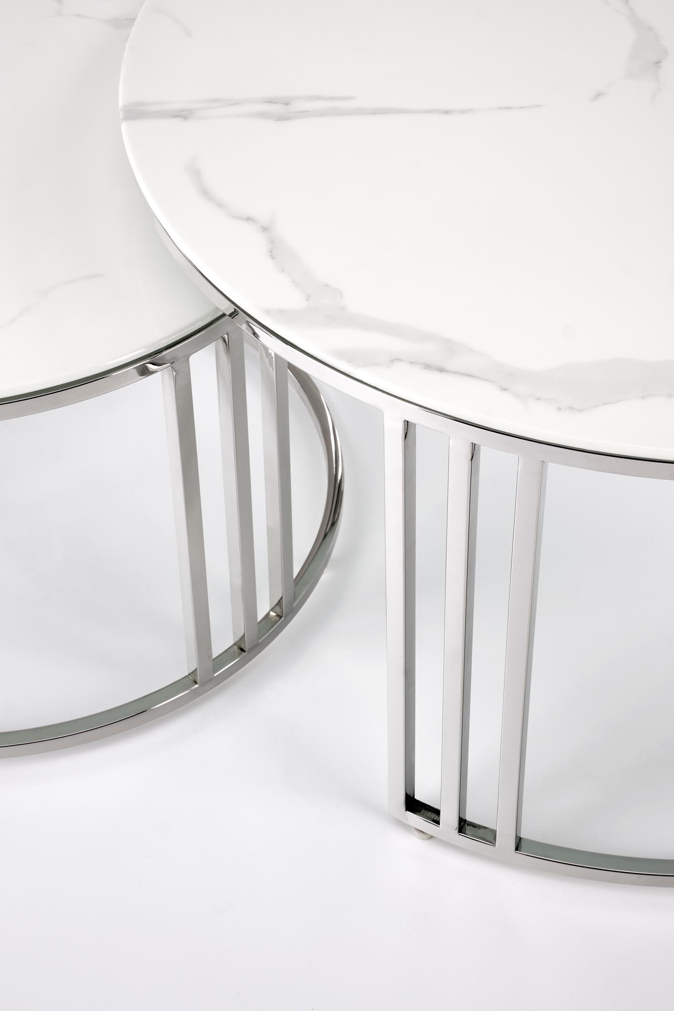 MERCURY 2 zestaw 2 ław, stelaż – srebrny, szkło – biały marmur