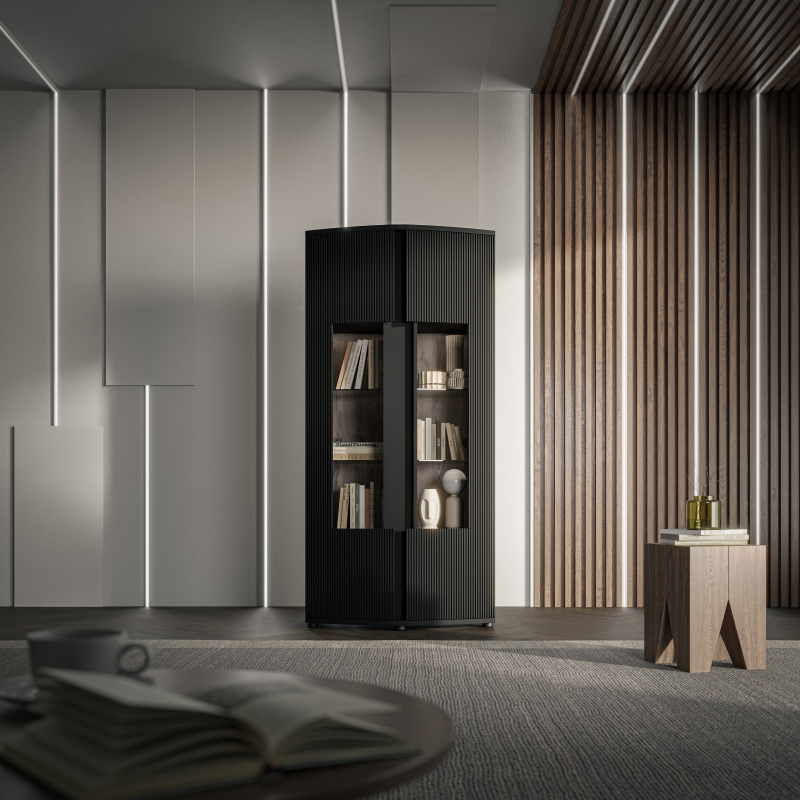 Front: płyta MDF laminowana 16mm z widocznymi frezami
