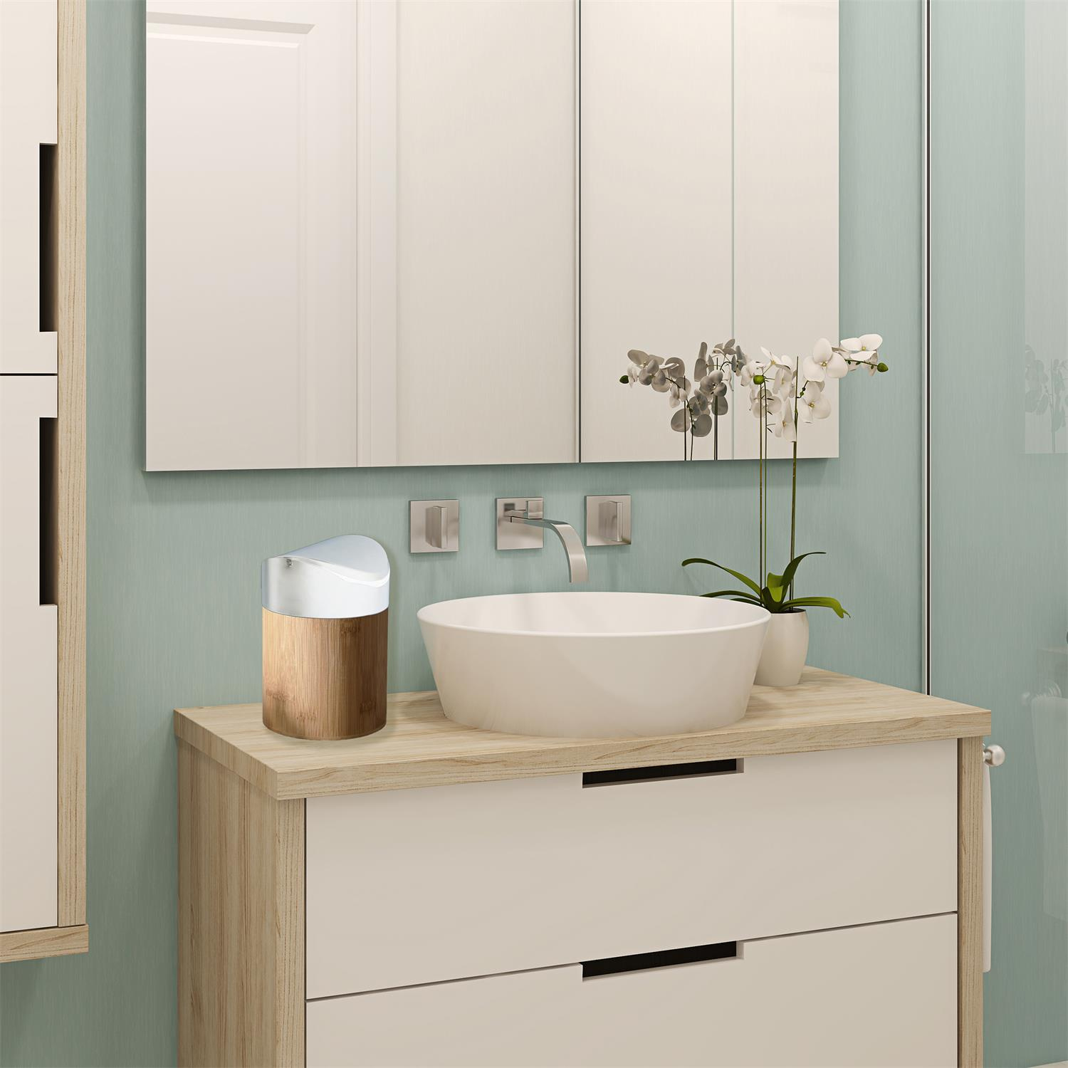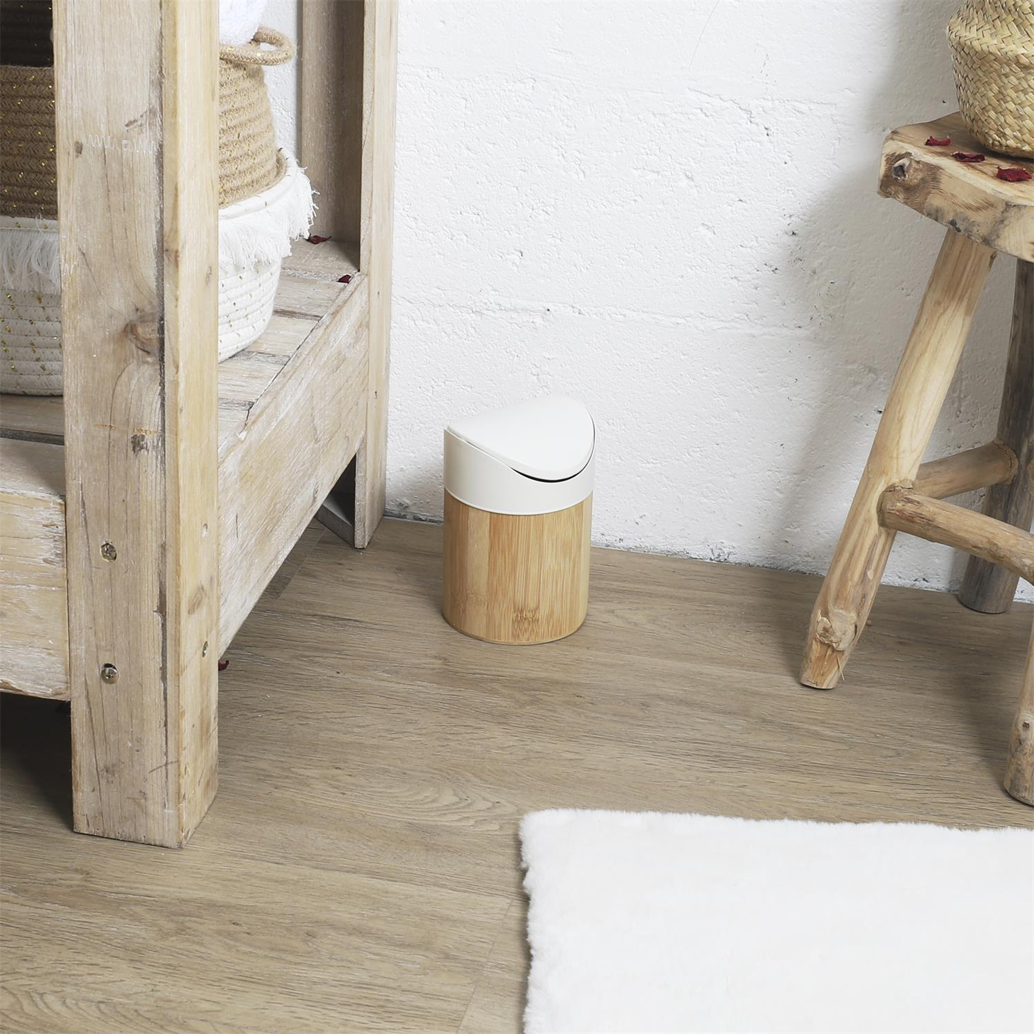 Mini kosz na śmieci bambus/ biały